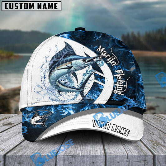 BlueJose Marlin Fishing Blue Flame Sport Custom Name Cap
