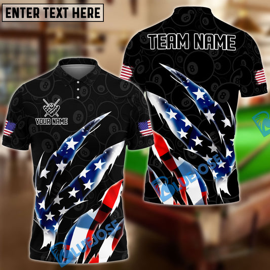 BlueJose Billiards Ball 8 American Eagle with USA Flag Customized Name, Team Name 3D Shirt