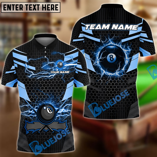 BlueJose Billiards 8 Ball Electric Hexagon Personalized Name, Team Name Unisex Shirt (4 Colors)