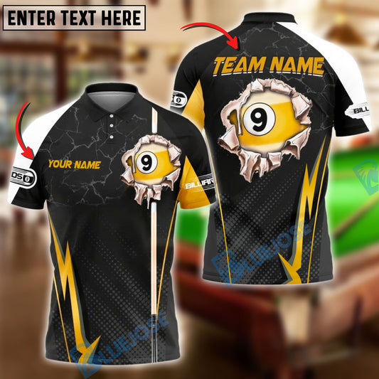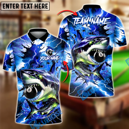BlueJose Billiards 9 Ball Shark and Lightning Personalized Name, Team Name Unisex Shirt (4 Colors)