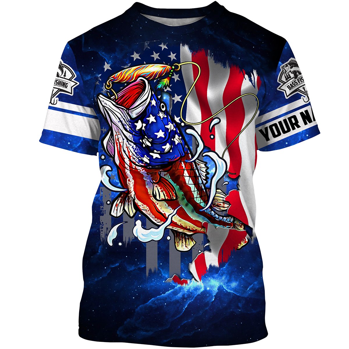 Bluejose Bass Fishing 3D American Flag Patriotic Customize Name All Over Print Shirt
