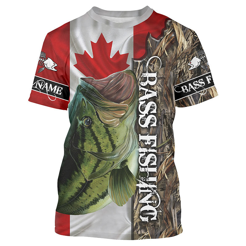 Bluejose Bass Fishing Canada Flag Custom Name All Over Print Shirts - Personalized Fishing Gift