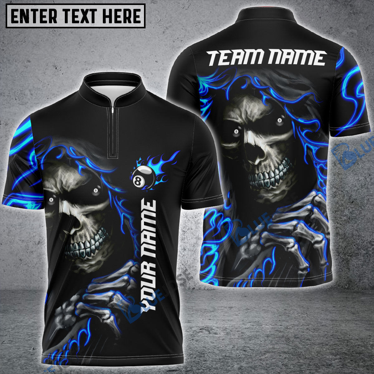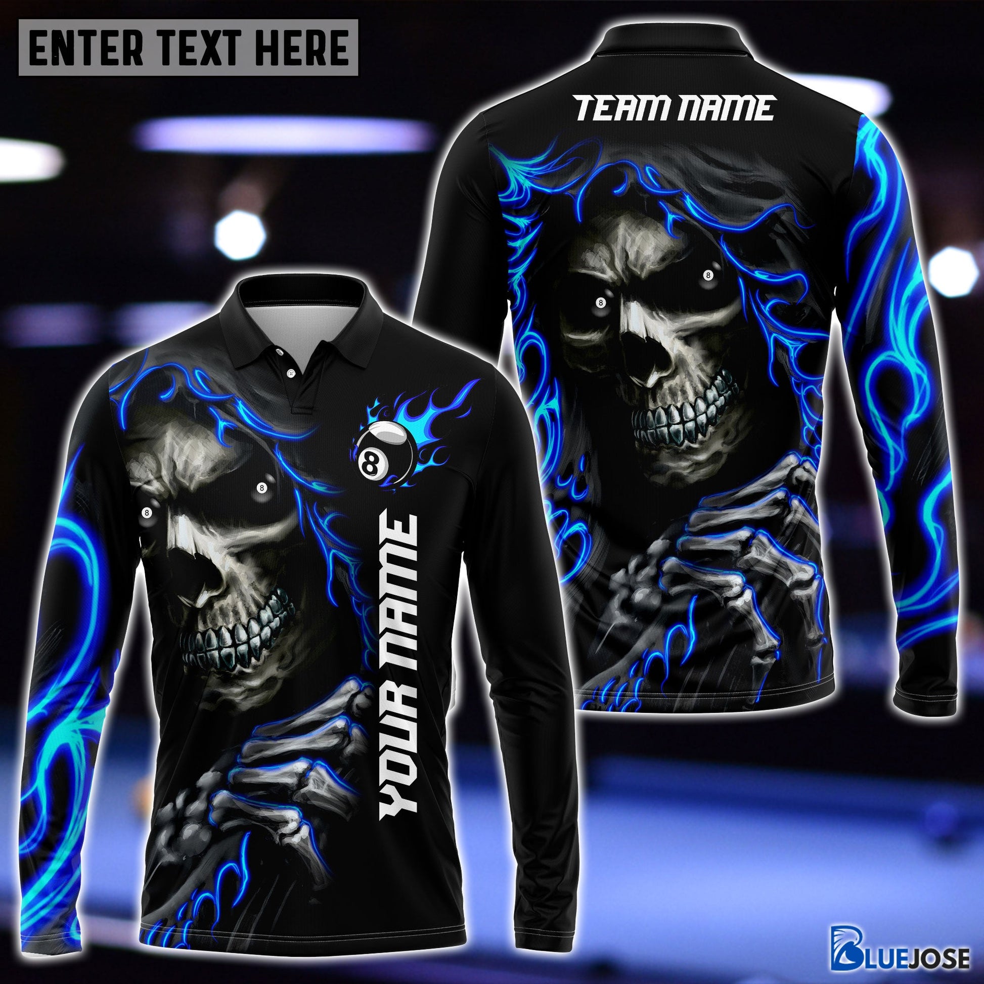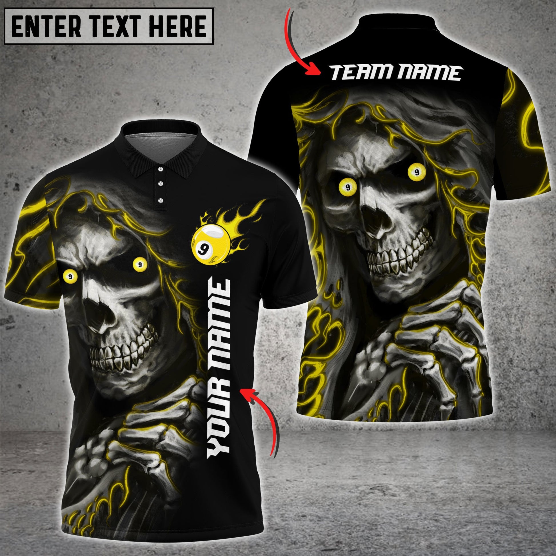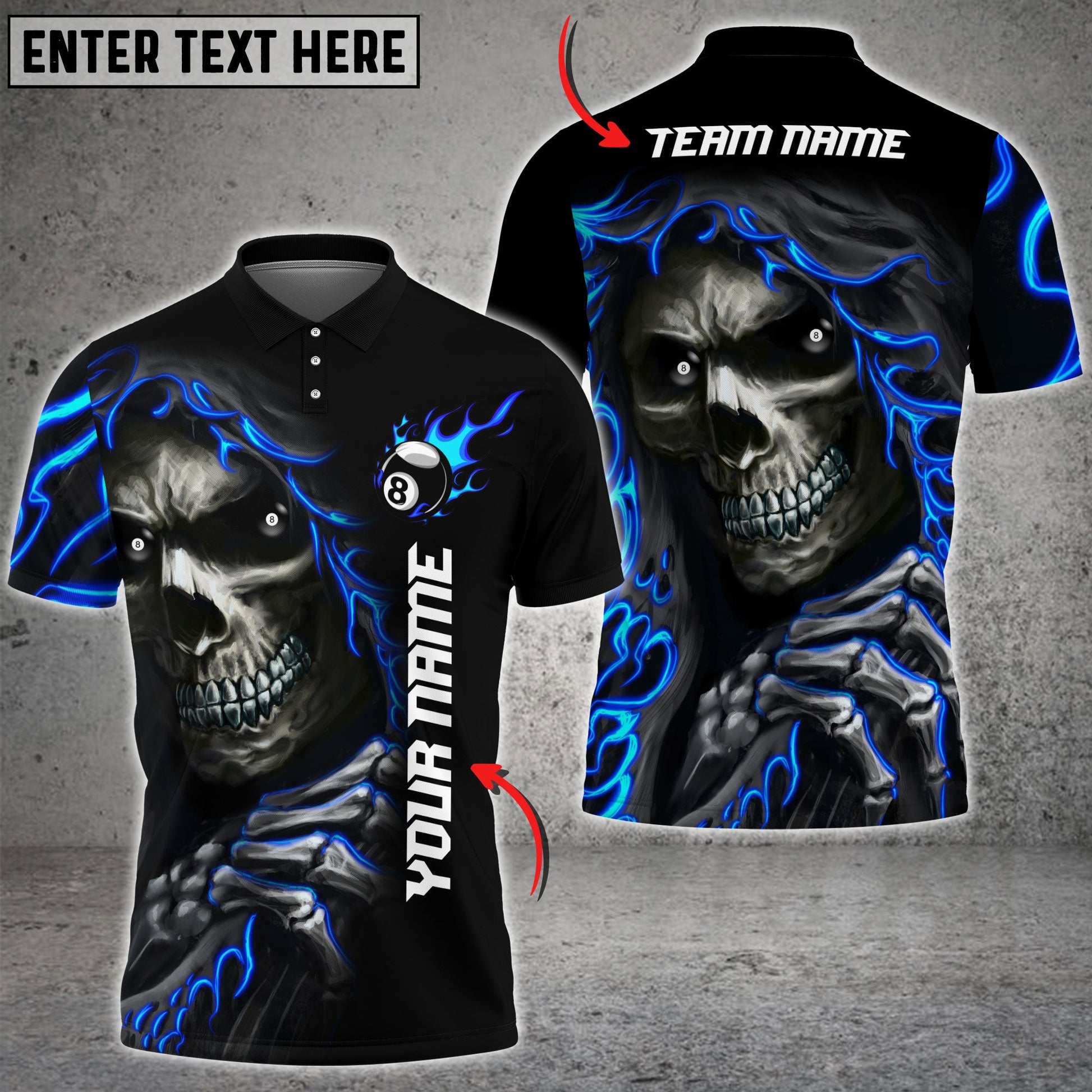 BlueJose Billiards Skull 8 Ball and 9 Ball Personalized Name, Team Name 3D Shirts