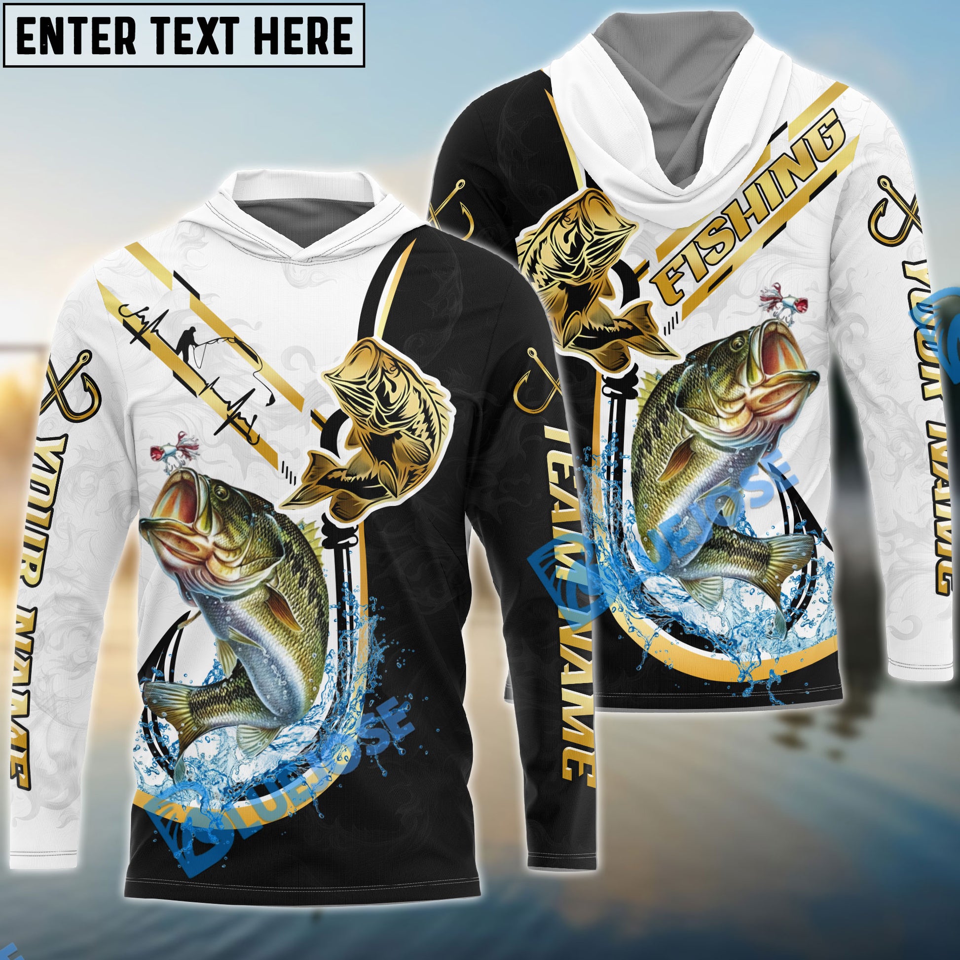 Bluejose Bass Fishing Black Golden Hook Name & Team Name 3D Shirts