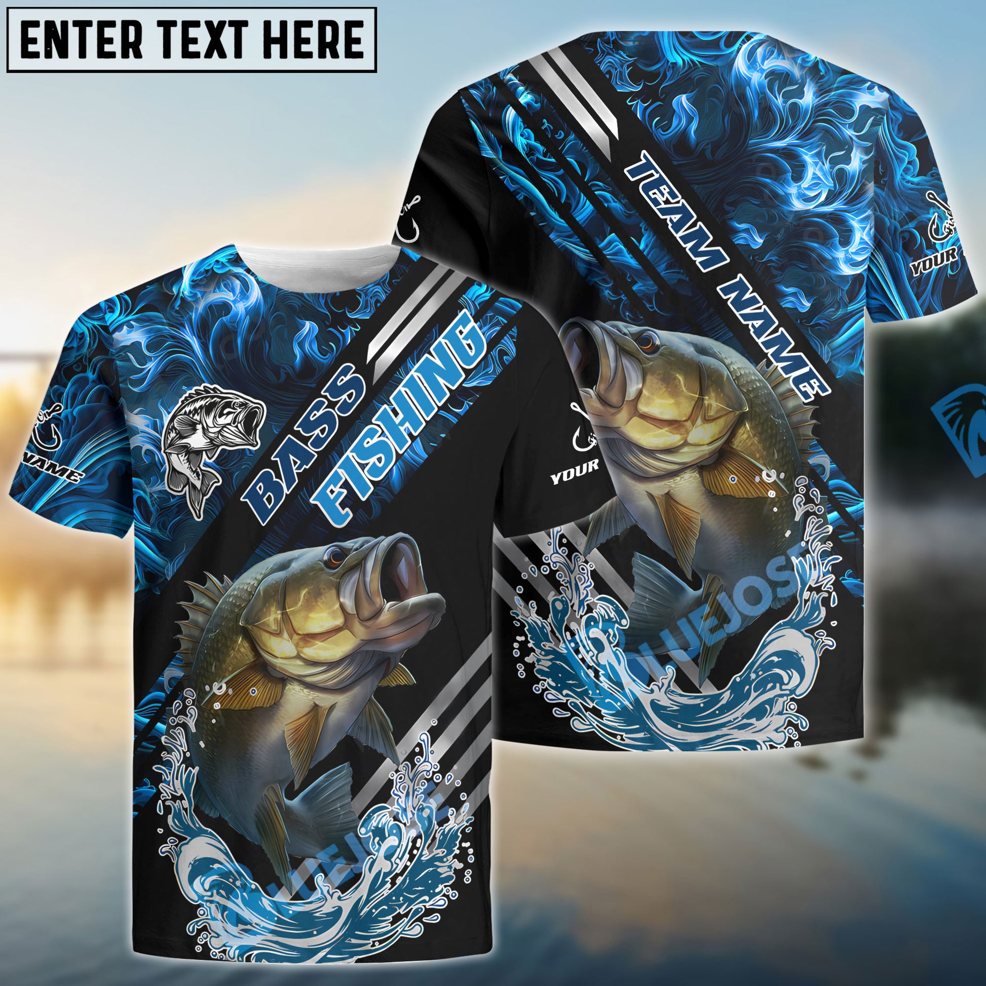 Bluejose Bass Fishing Blue Smoke Water Pattern Custom Name & Team Name 3D Shirts