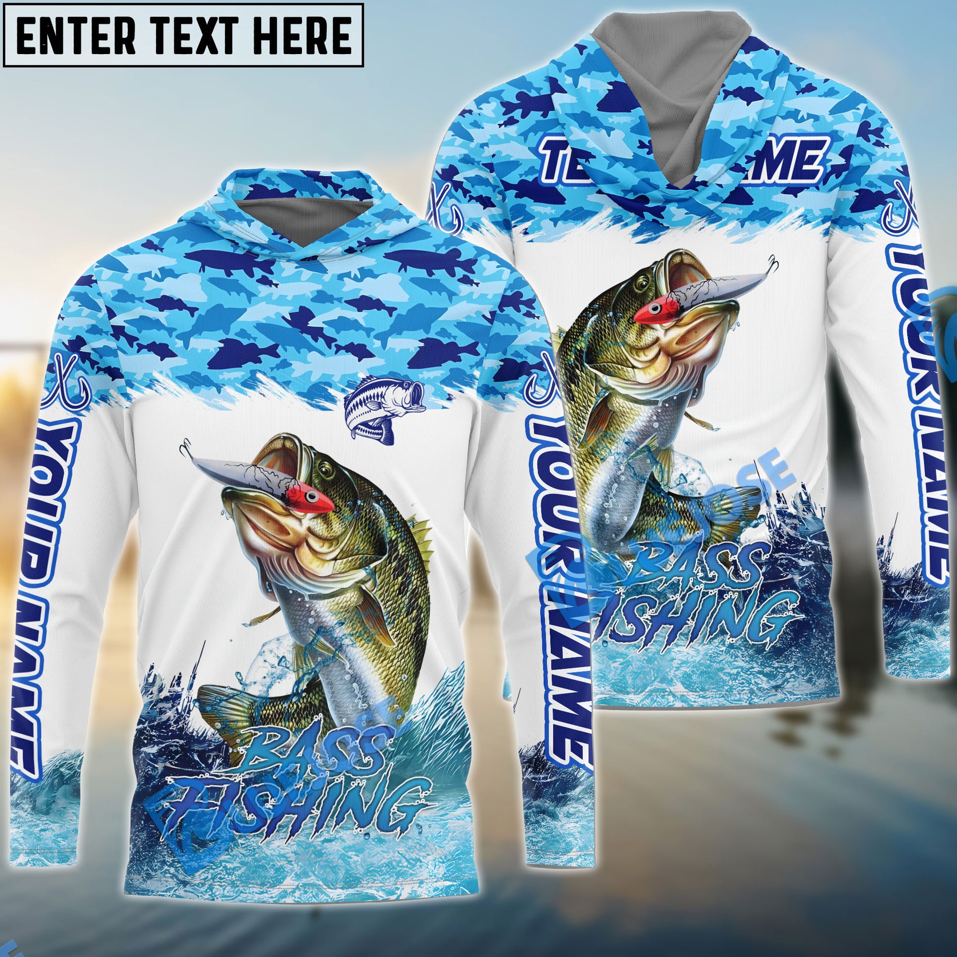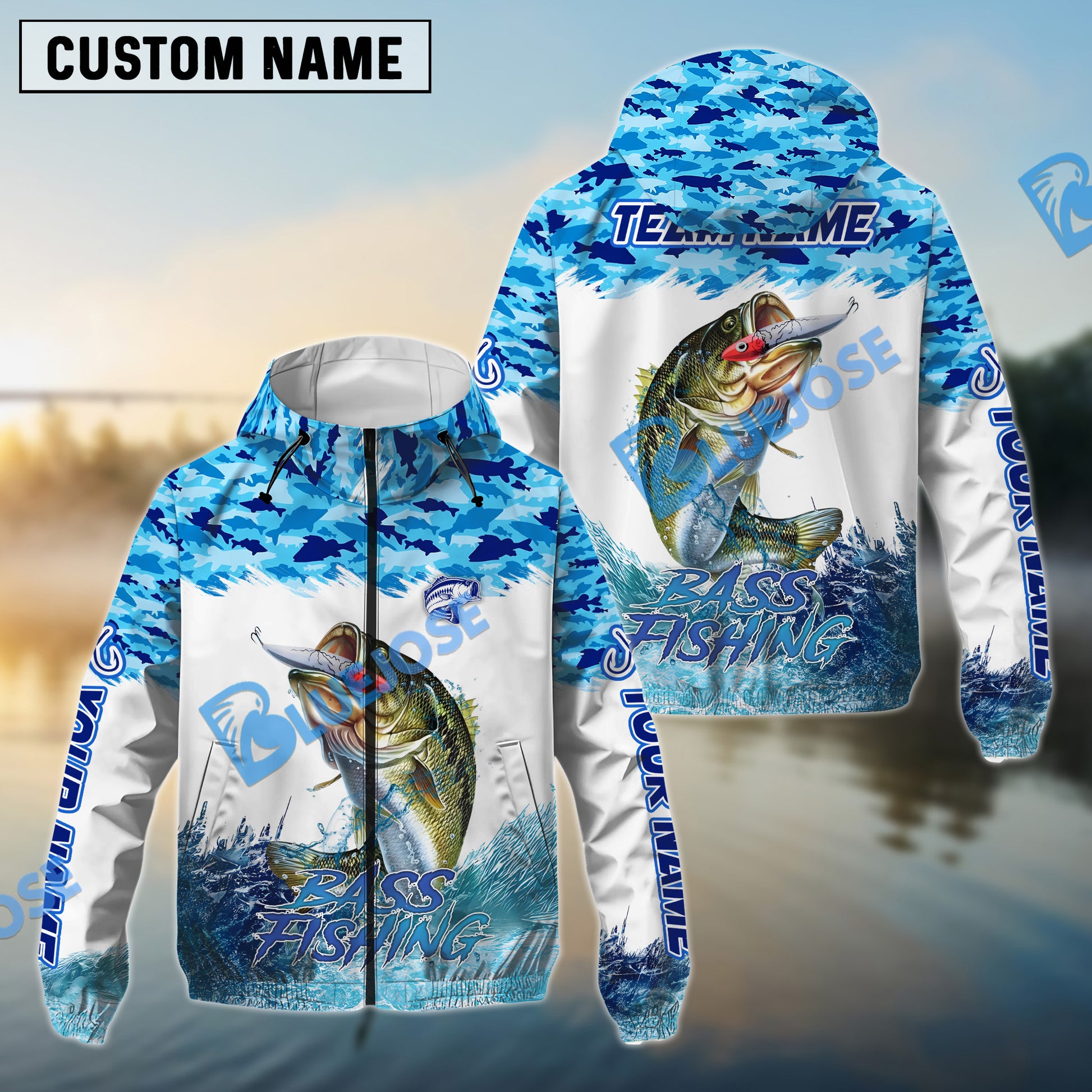 Bluejose Bass Fishing Blue Water Camo Custom Name & Team Name 3D Shirts
