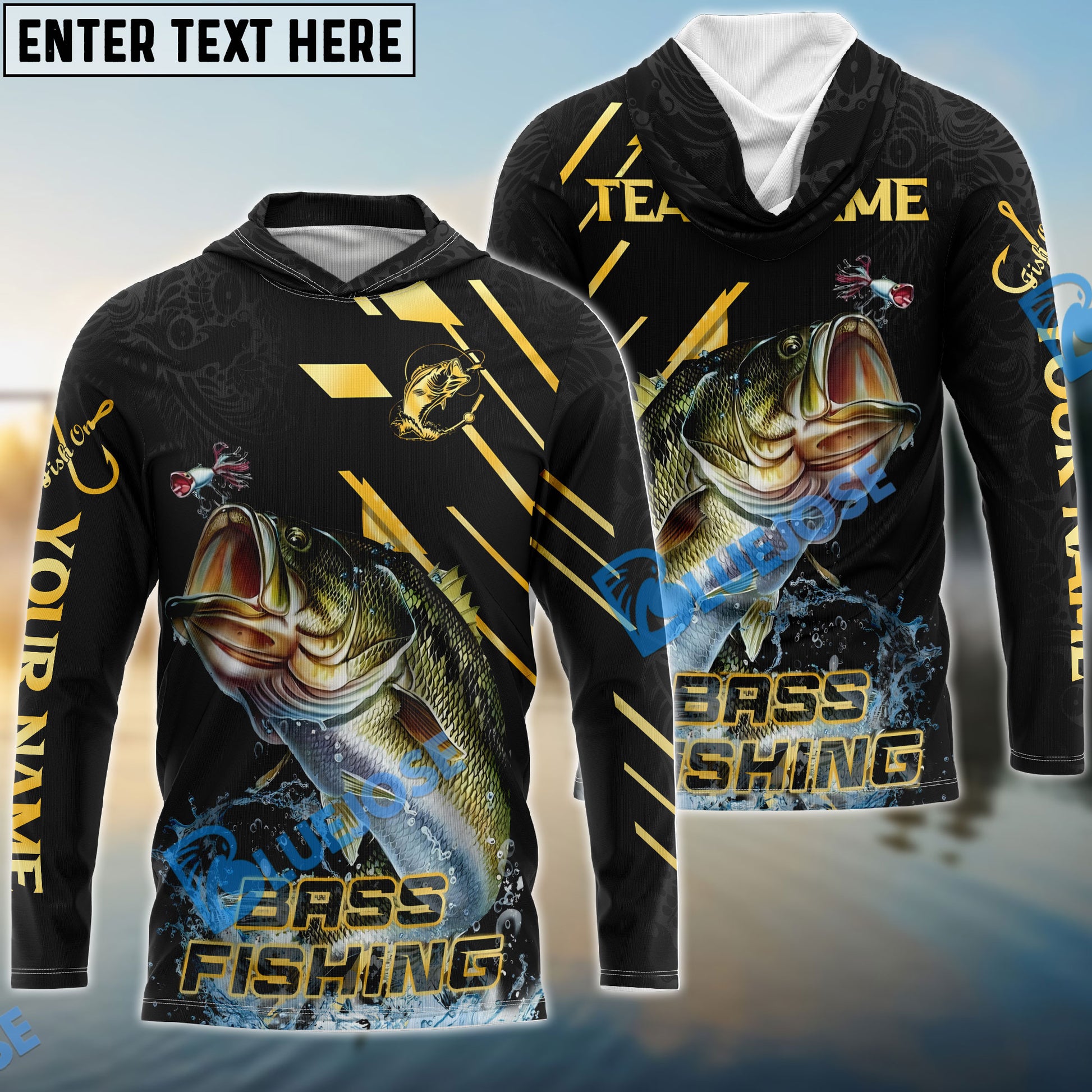 Bluejose Bass Fishing Gold Black Pattern Design Name & Team Name 3D Shirts