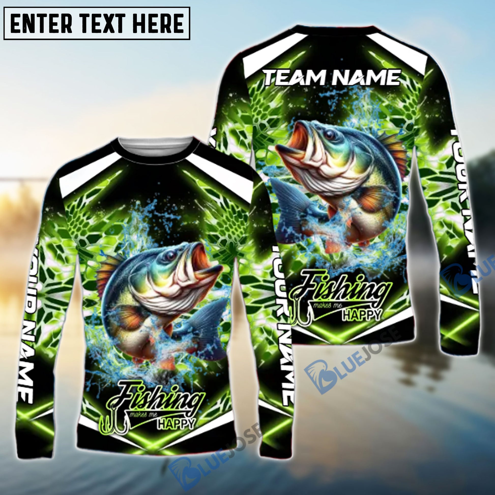 Bluejose Bass Fishing Green Happy Hook Design Name & Team Name 3D Shirts