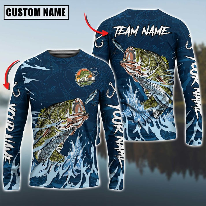Bluejose Bass Fishing Navy Water Pattern Custom Name & Team Name 3D Shirts