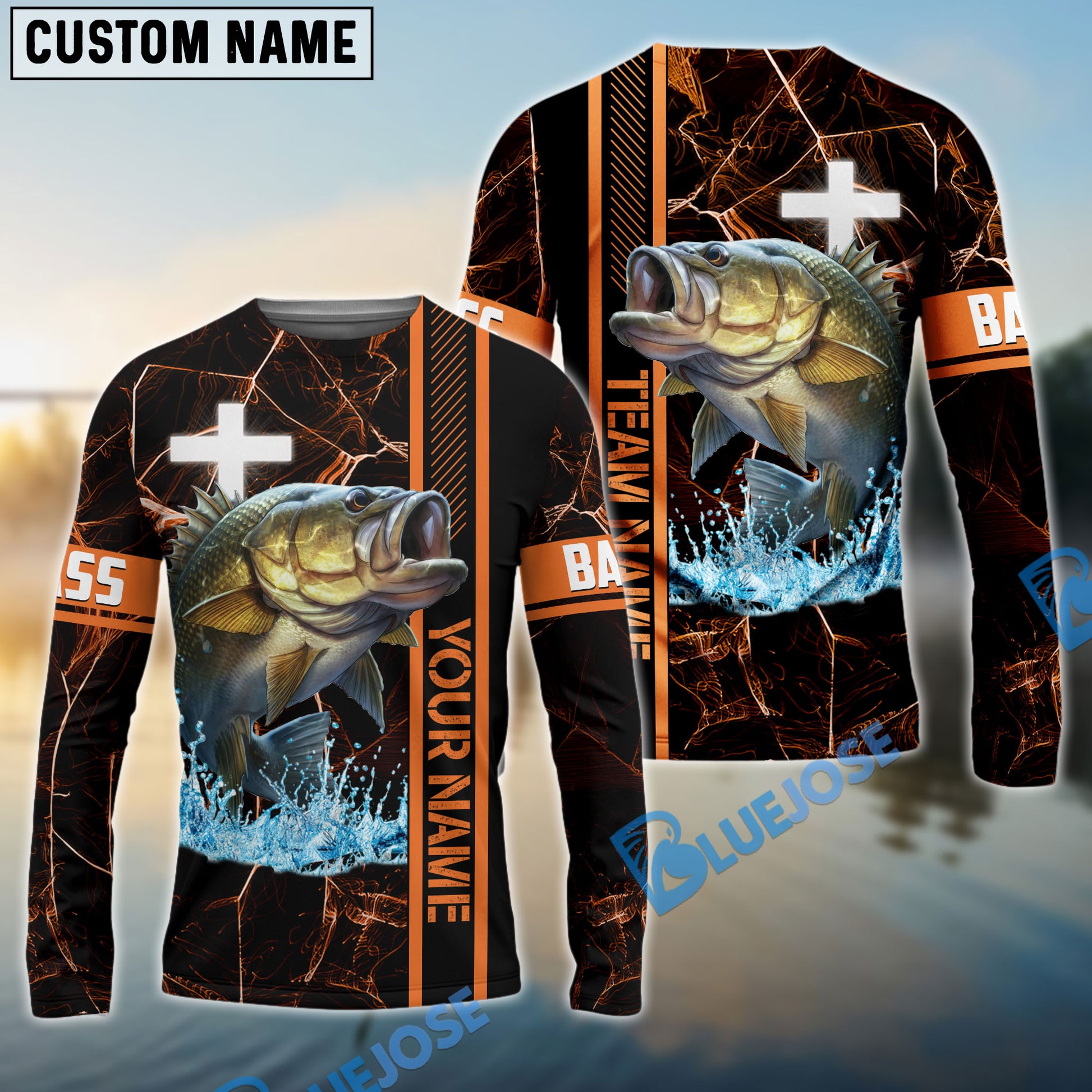 Bluejose Bass Fishing Orange Cross Pattern Custom Name & Team Name 3D Shirts