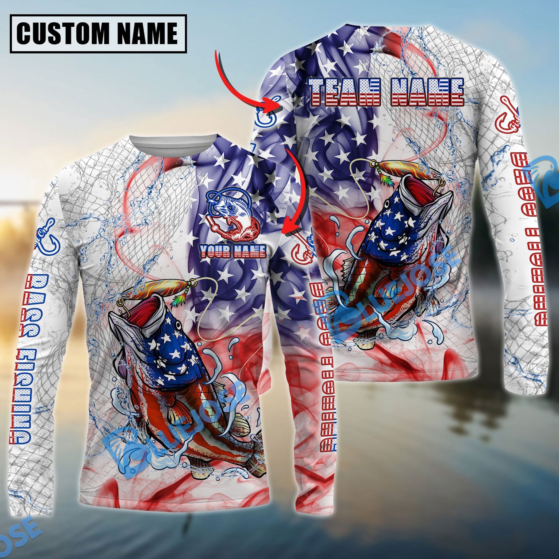 Bluejose Bass Fishing US Flag Pattern Design Name & Team Name 3D Shirts