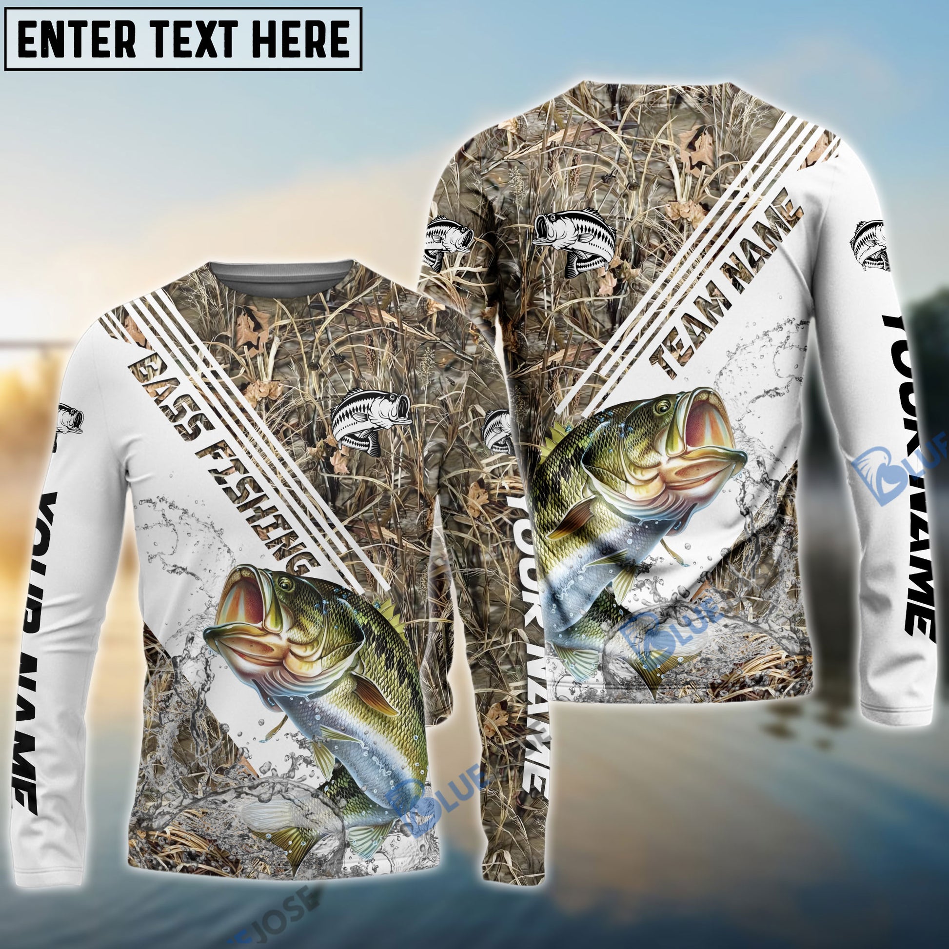 Bluejose Bass Fishing White And Grass Camo Sport Custom Name & Team Name 3D Shirts