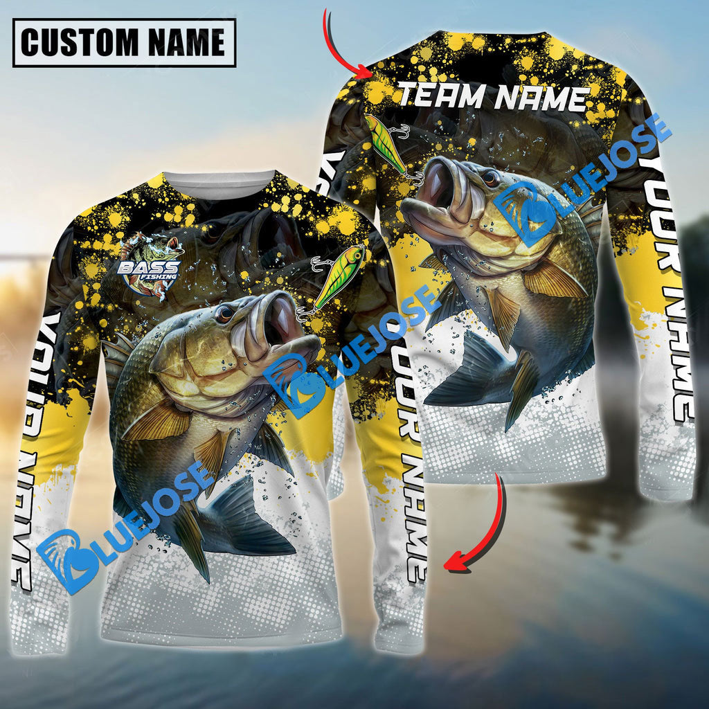 Bluejose Bass Fishing Yellow White Jersey Sport Pattern Personalized Name Team Name 3D Shirts