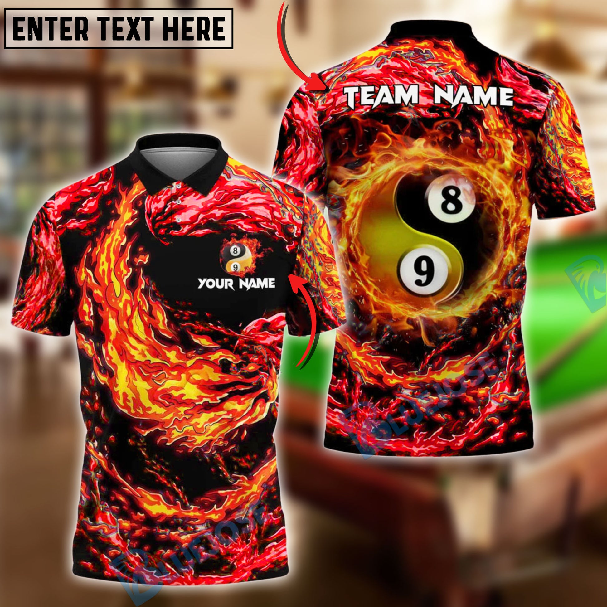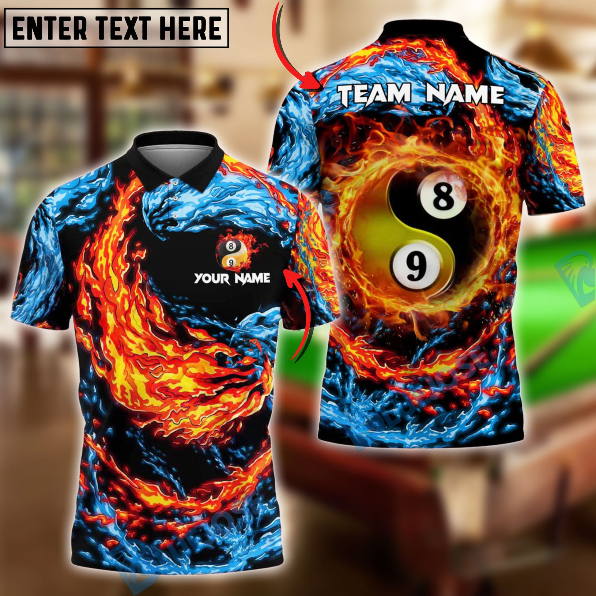 BlueJose Billiards 8 & 9 Ball Yin Yang Fire & Ice Double Firestorm Personalized Name Shirt (4 Colors)