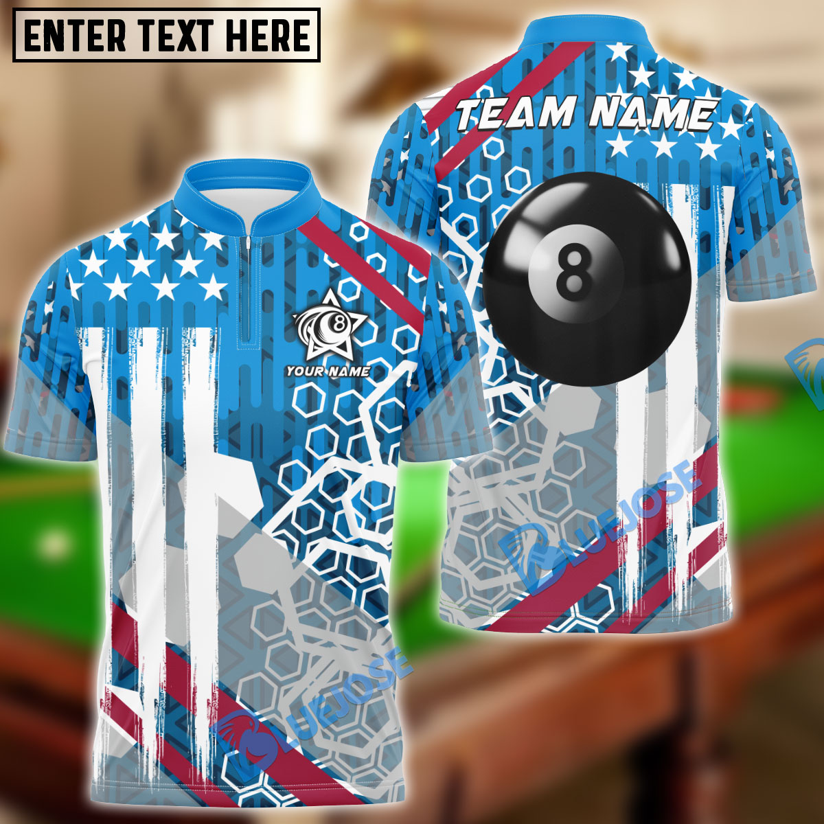 BlueJose Billiards 8 ball & 9 Ball New USA Personalized Name, Team Name Shirt (4 Colors)