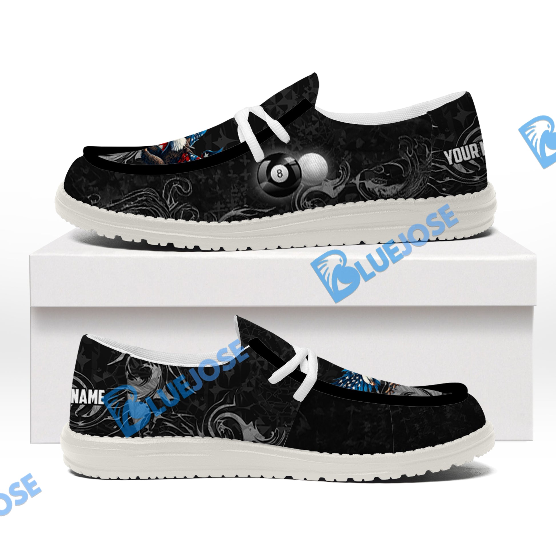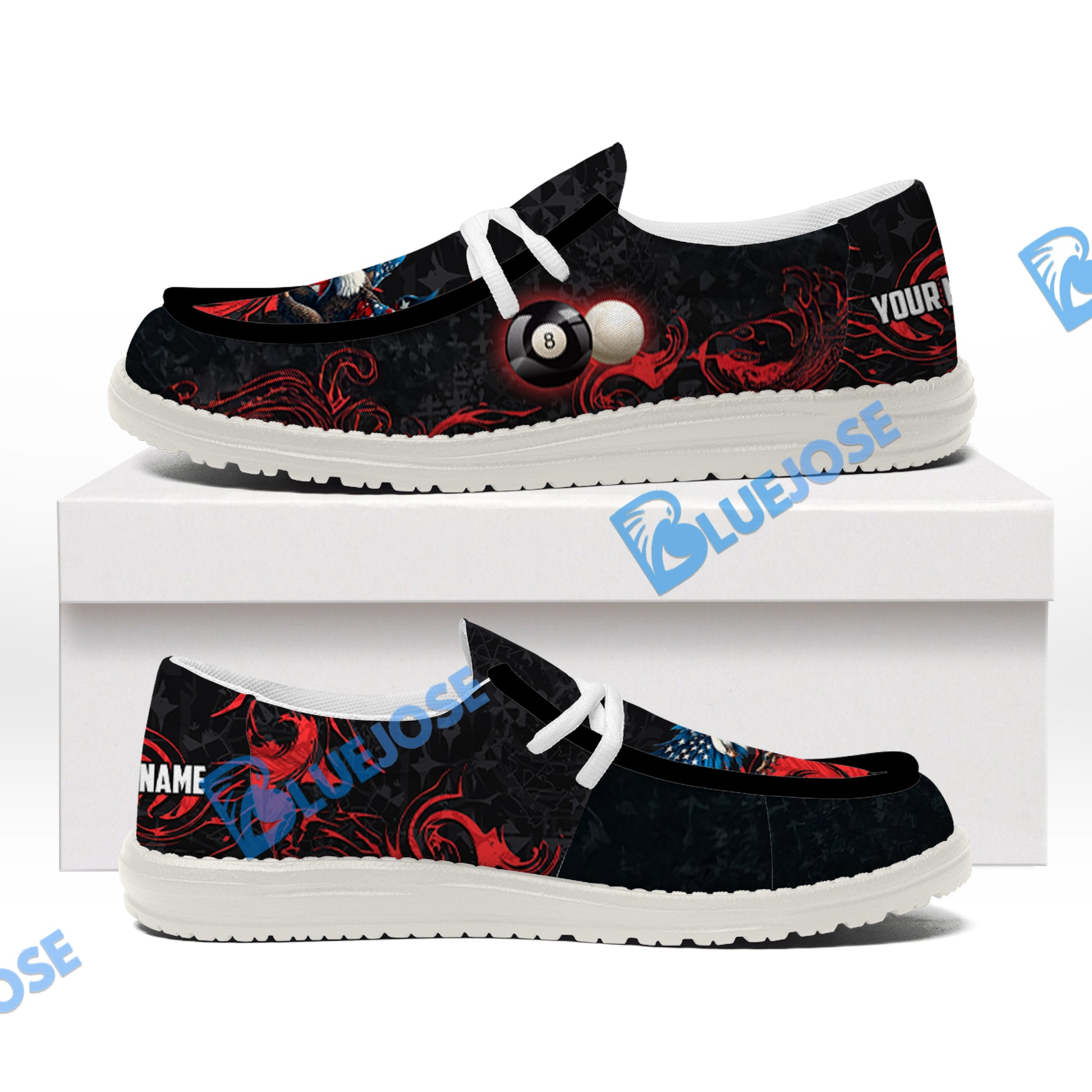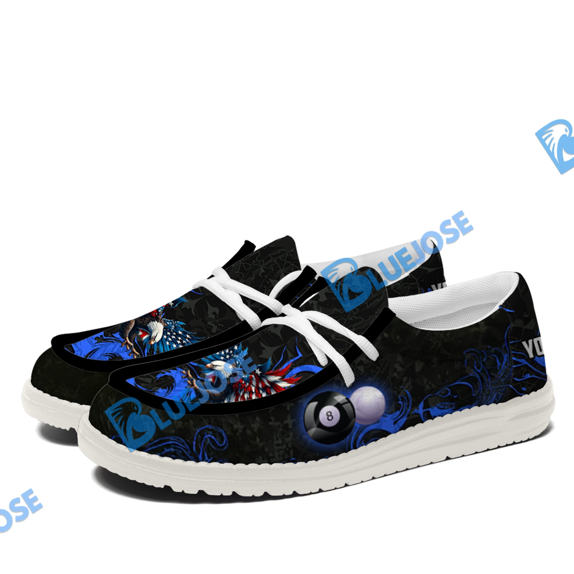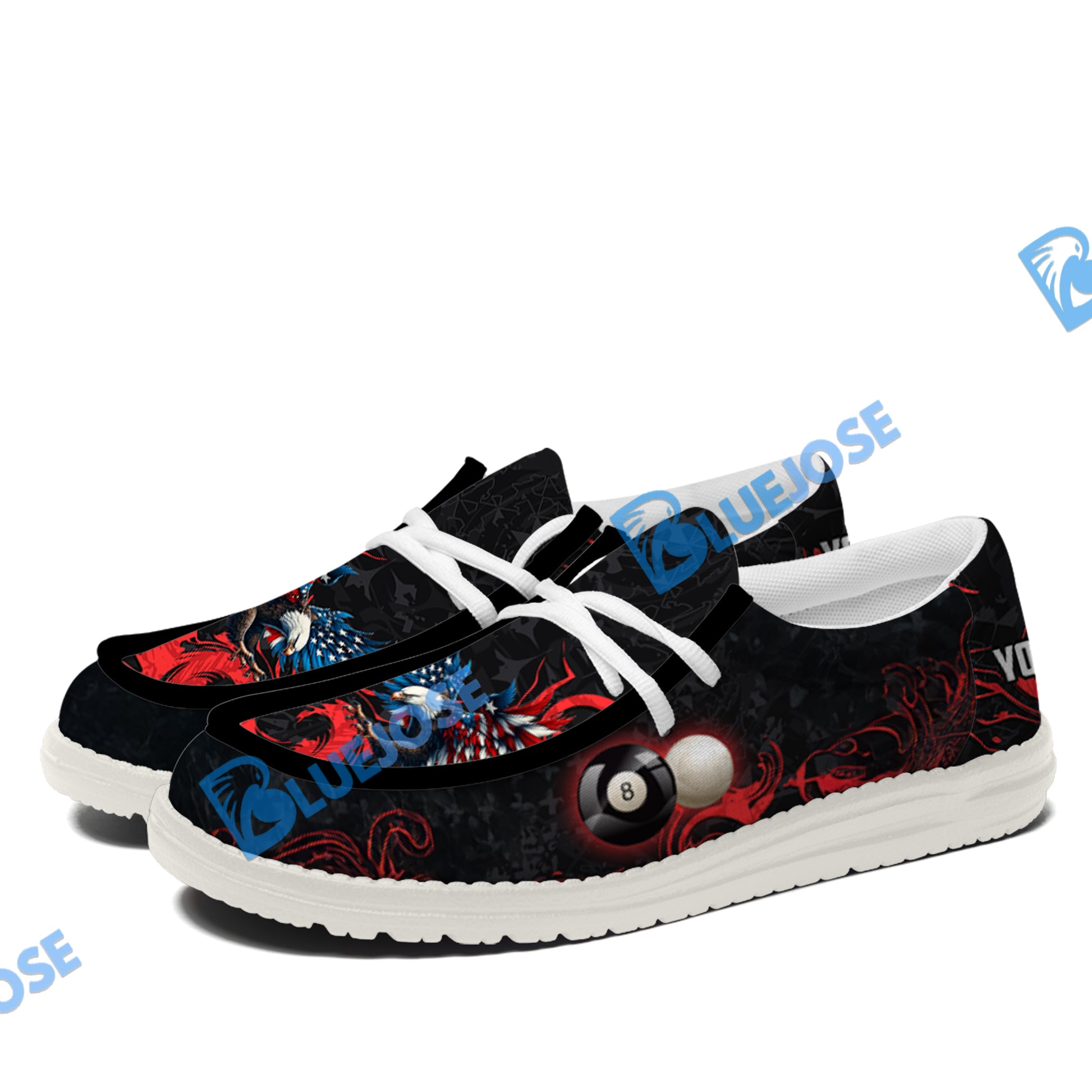 BlueJose Billiards 8 Ball Almighty American Eagle White Canvas Loafer Shoes (4 Colors)