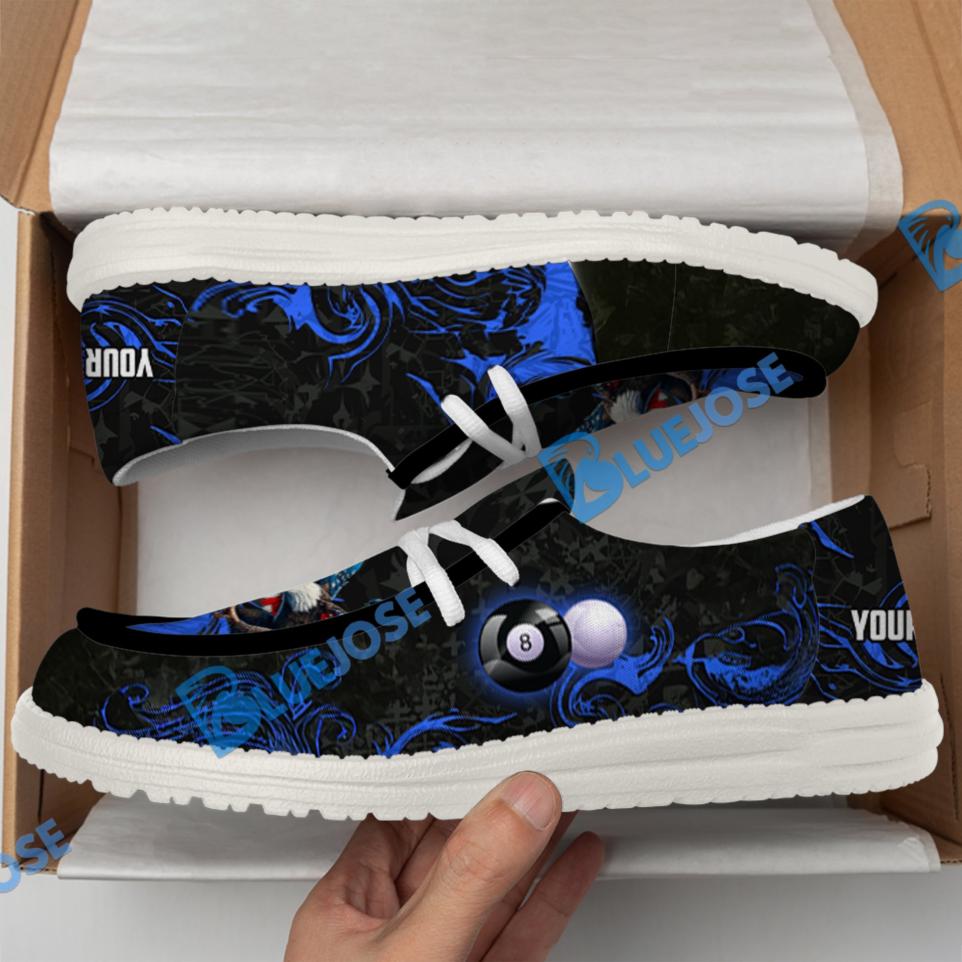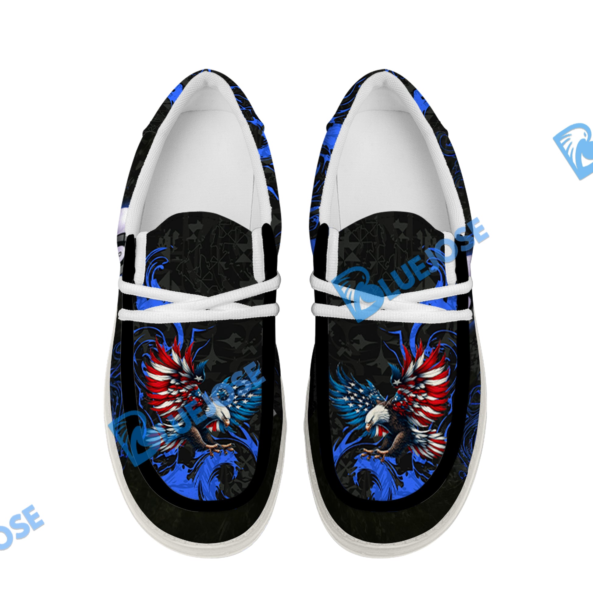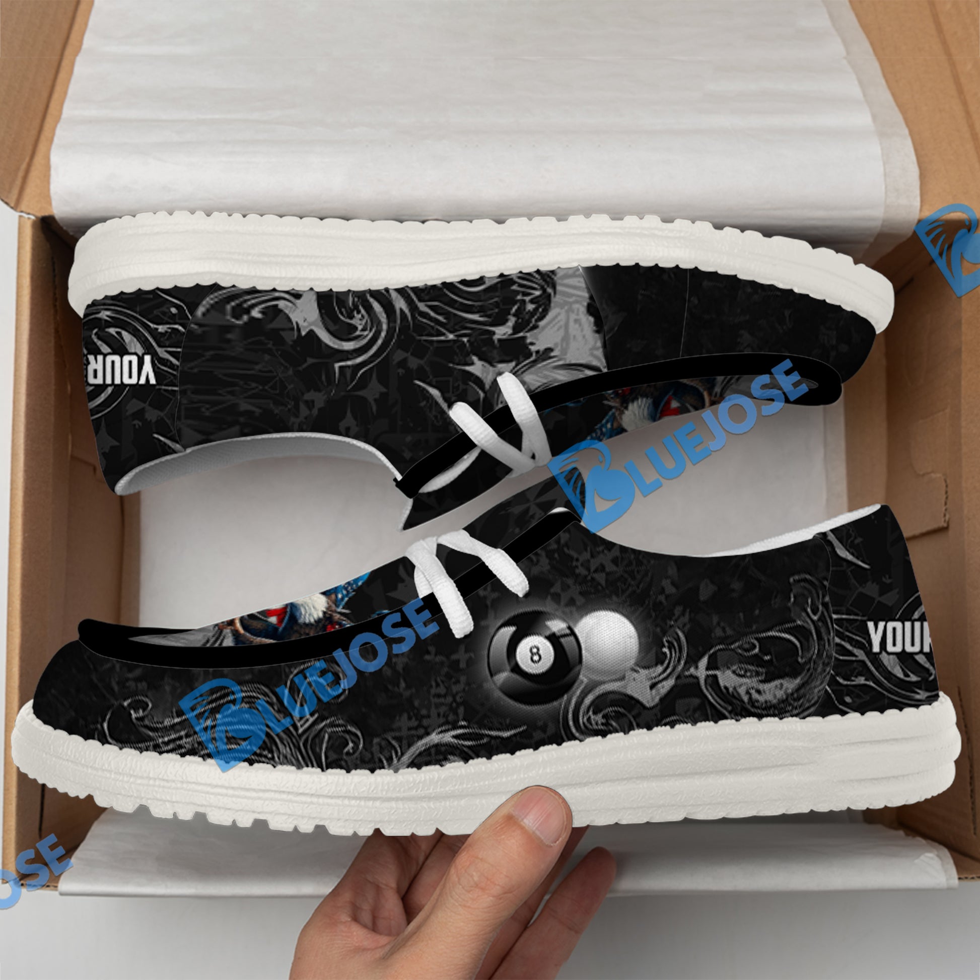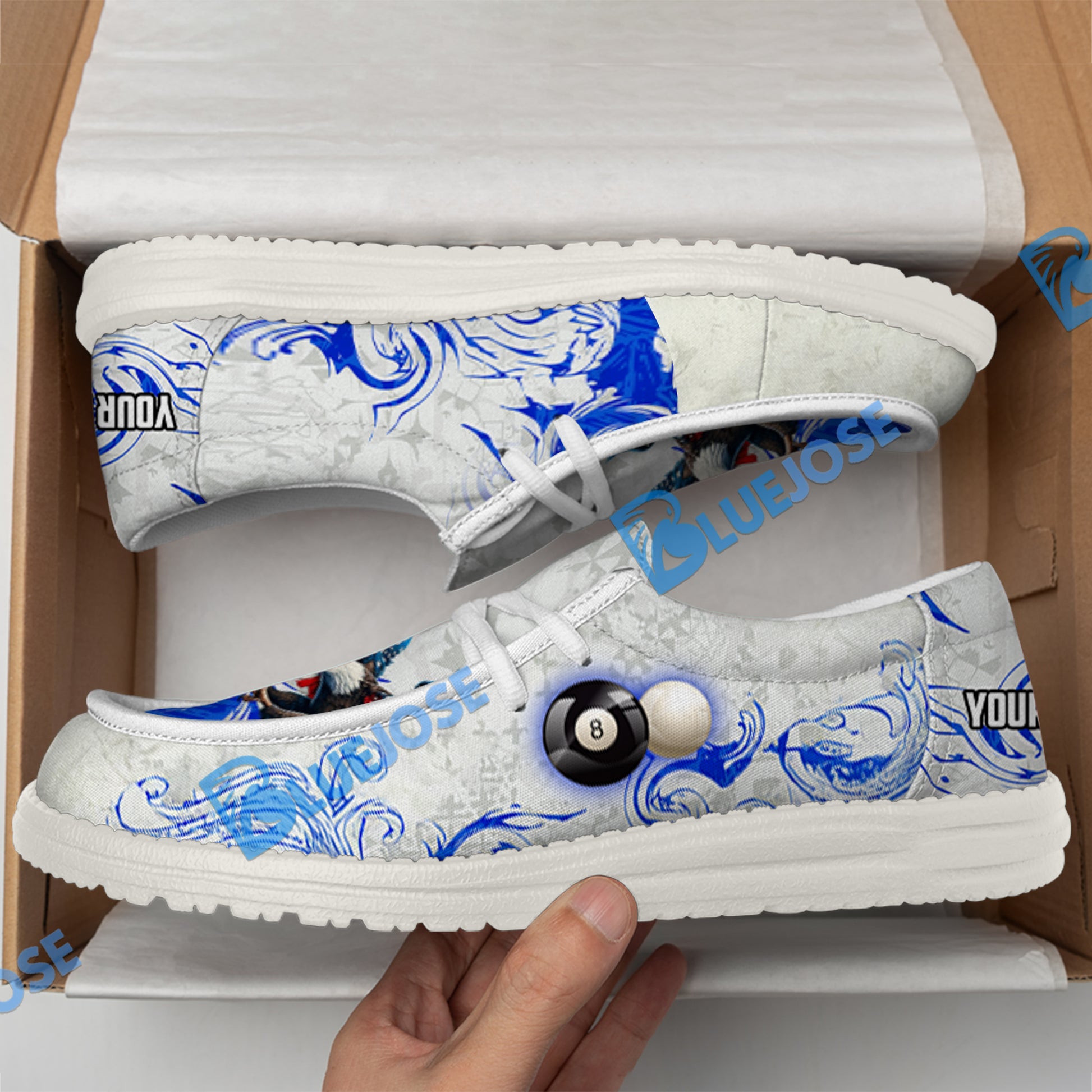 BlueJose Billiards 8 Ball Almighty American Eagle White Canvas Loafer Shoes (4 Colors)