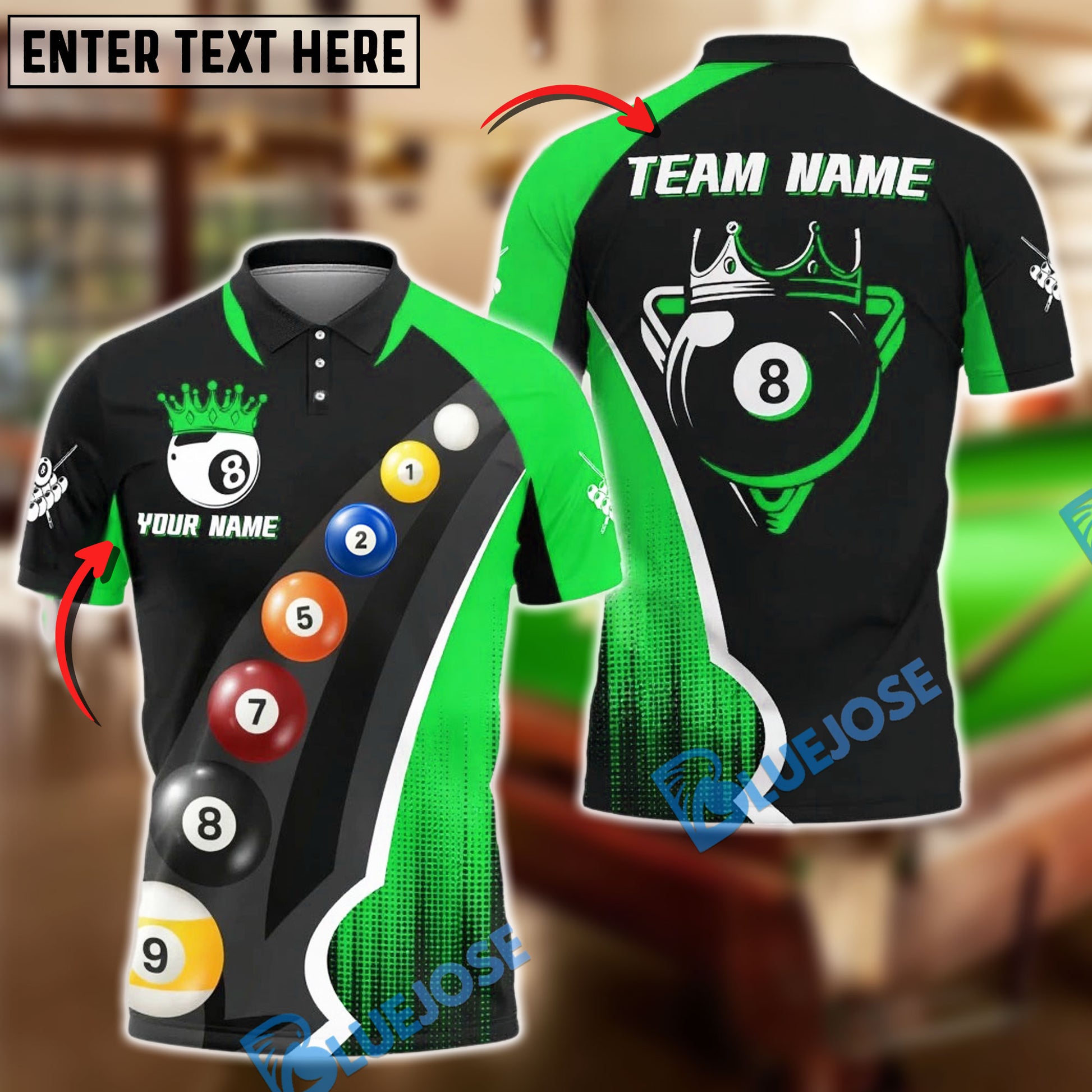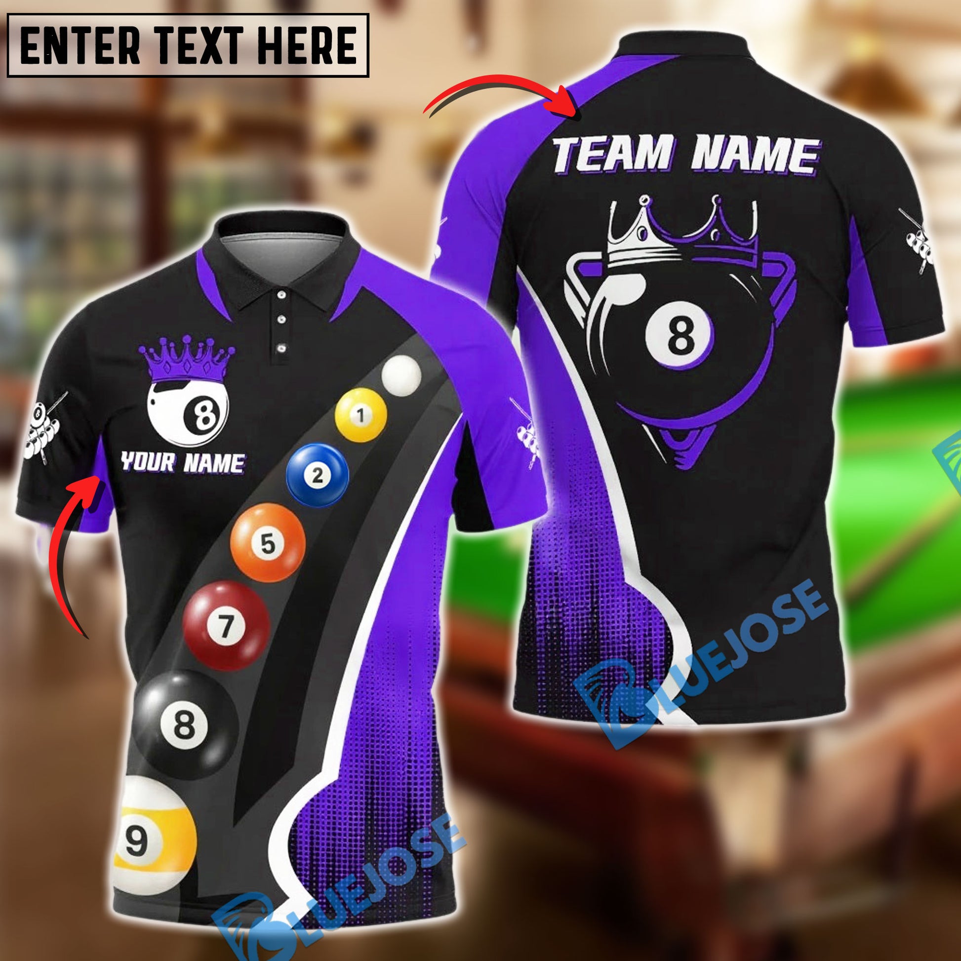 BlueJose Billiards 8-Ball Black Crown Design Personalized Name Shirt (4 Colors)