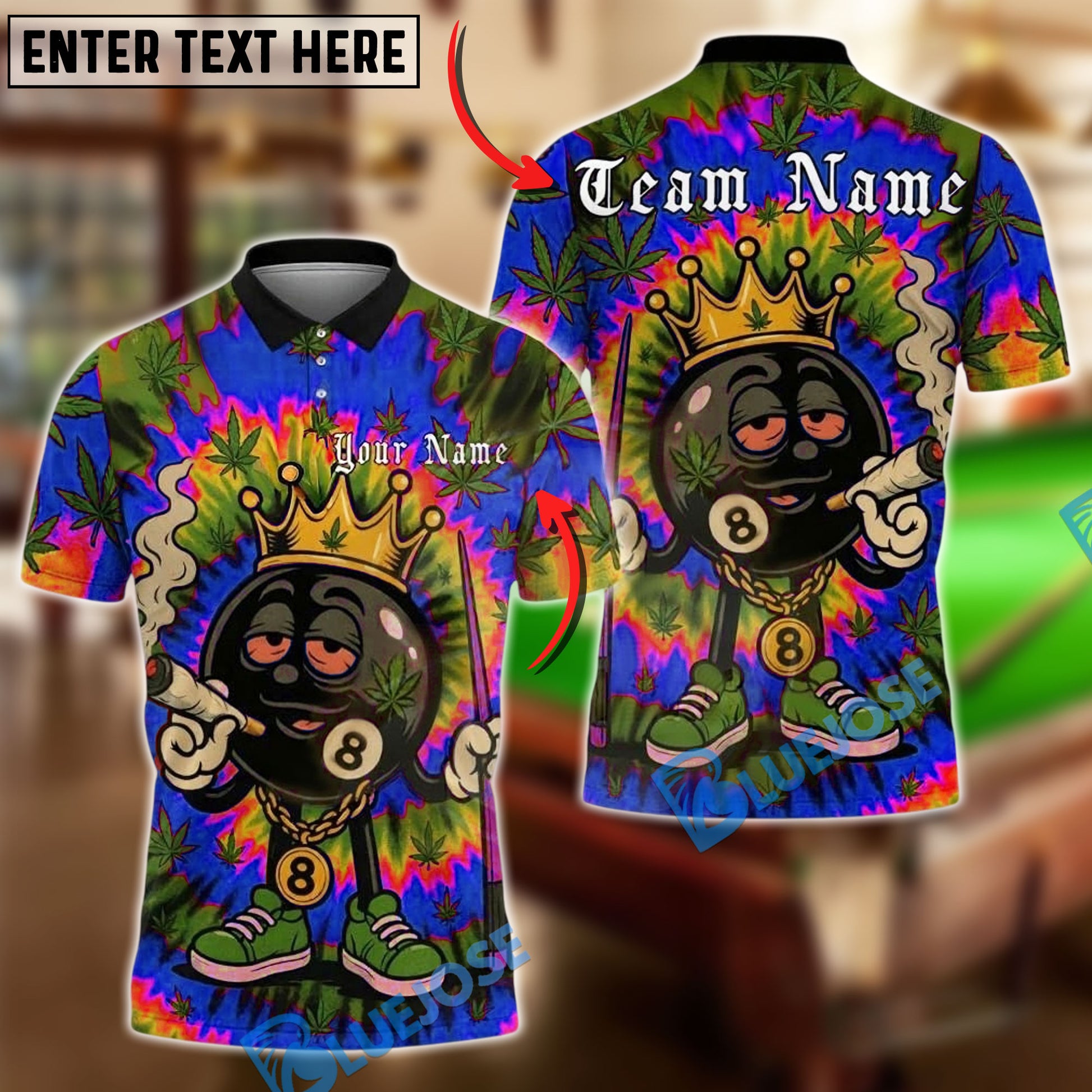 BlueJose Billiards 8 Ball Cartoon Rasta Weed Leaf Personalized Name, Team Name Unisex Shirt (4 Colors)