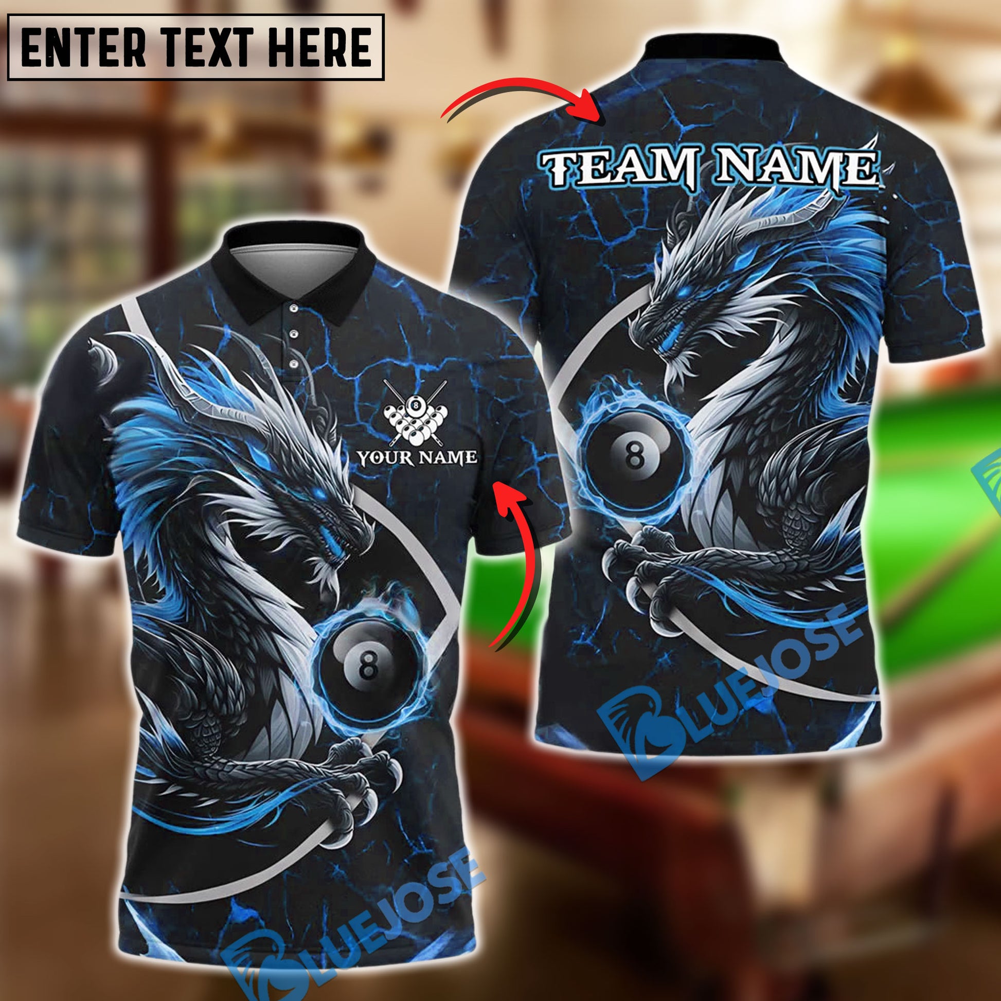 BlueJose Billiards 8-Ball Dragon Fiery Crack Pattern Personalized Name Shirt (4 Colors)