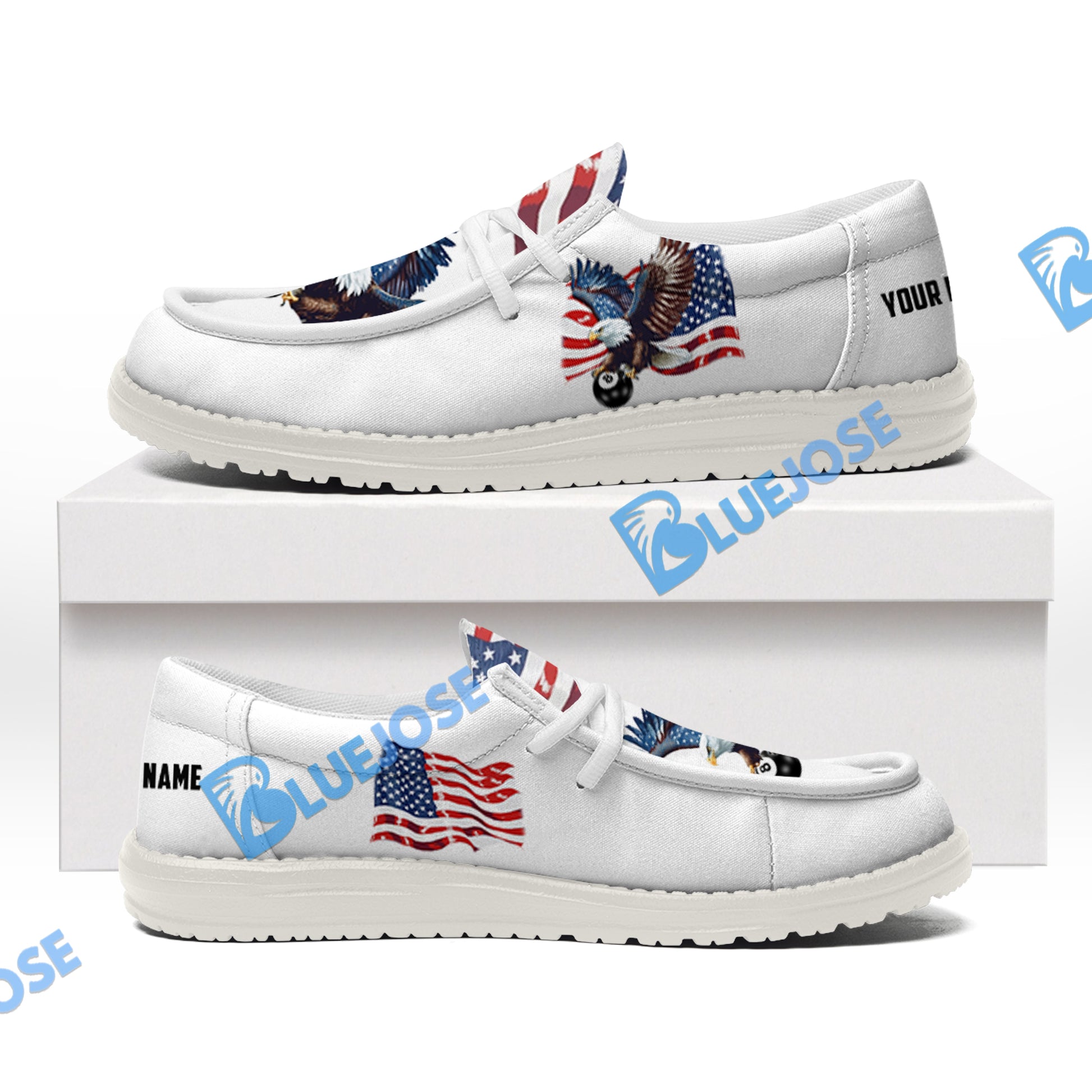 BlueJose Billiards 8 Ball Eagle US Flag Retro White Canvas Loafer Shoes