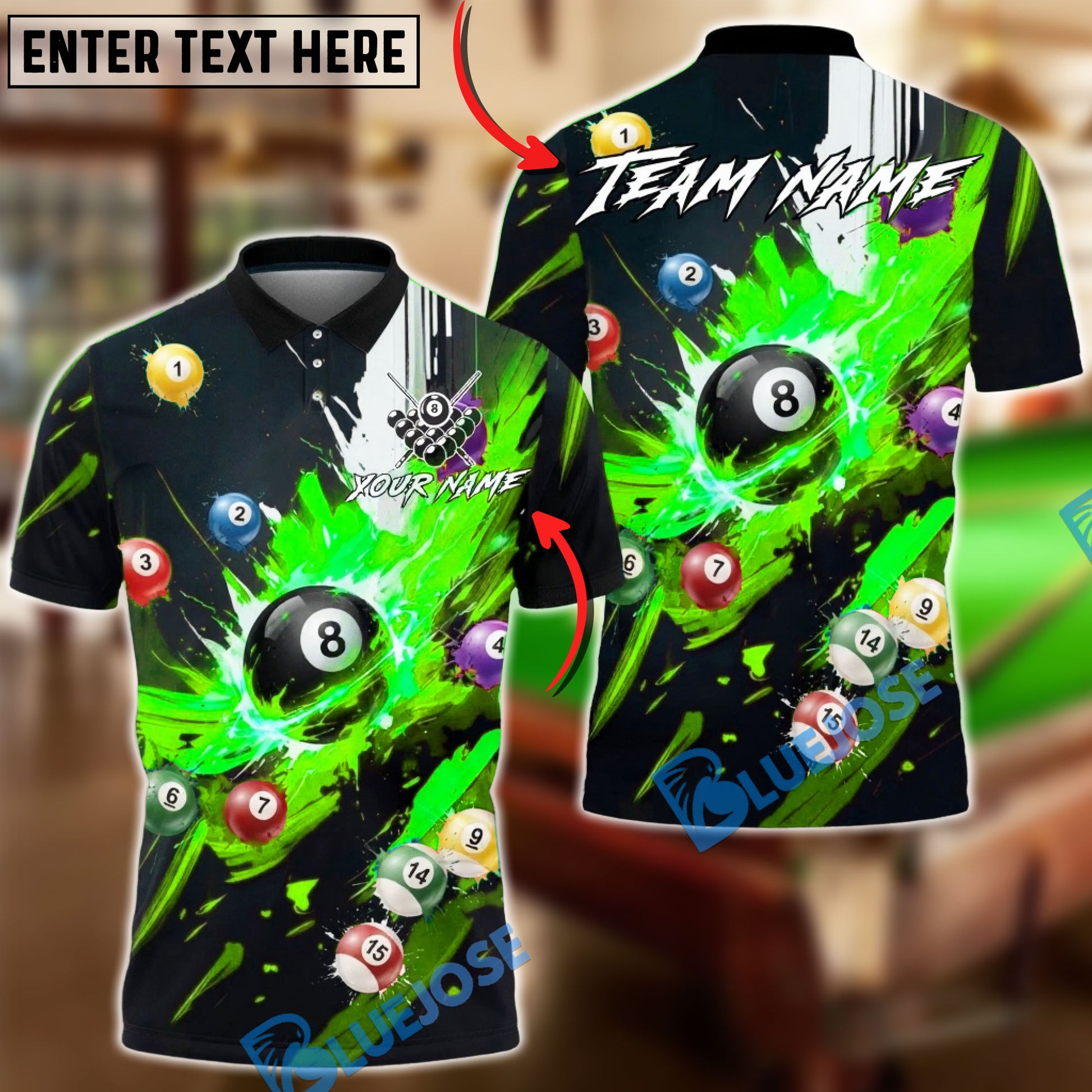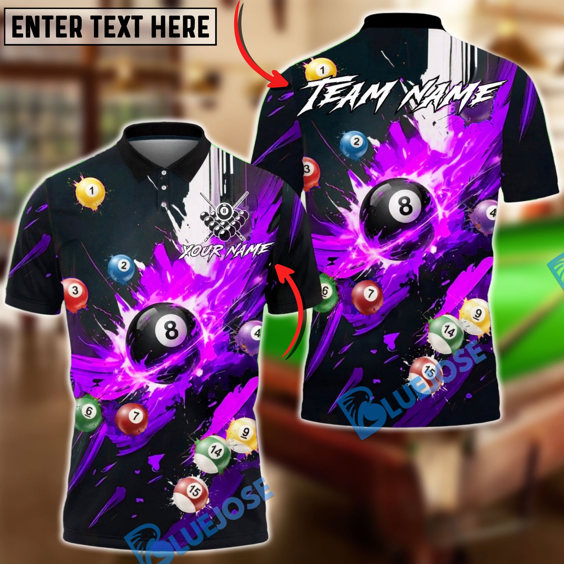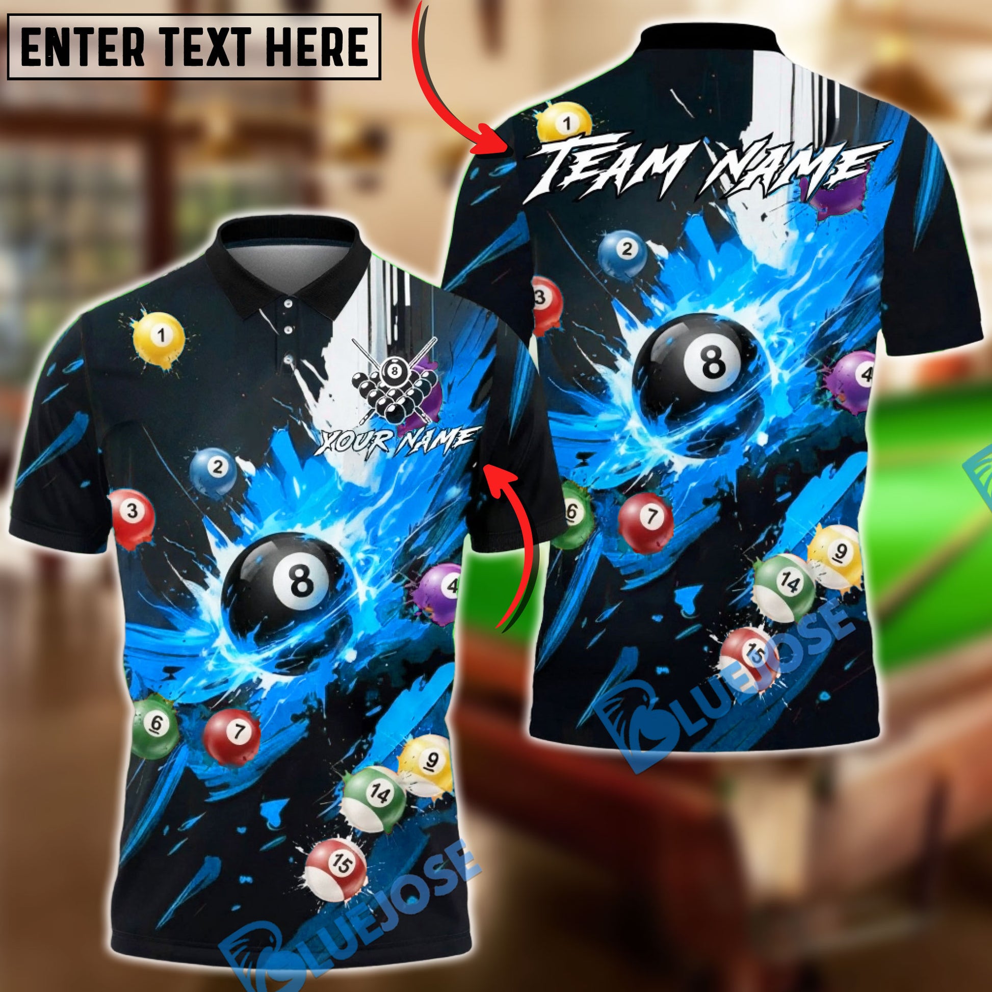 BlueJose Billiards 8-Ball Explosive Fire Effect Personalized Name, Team Name Unisex Shirt (6 Colors)
