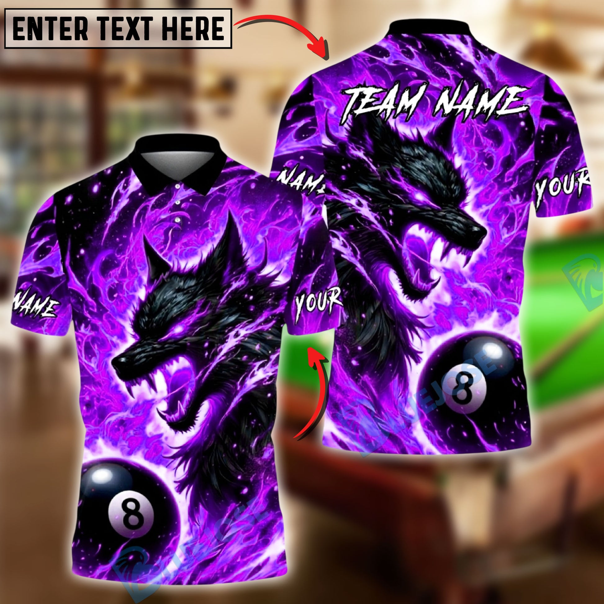 BlueJose Billiards 8-Ball Fire Wolf Flame Art Design Personalized Name, Team Name Unisex Shirt (4 Colors)