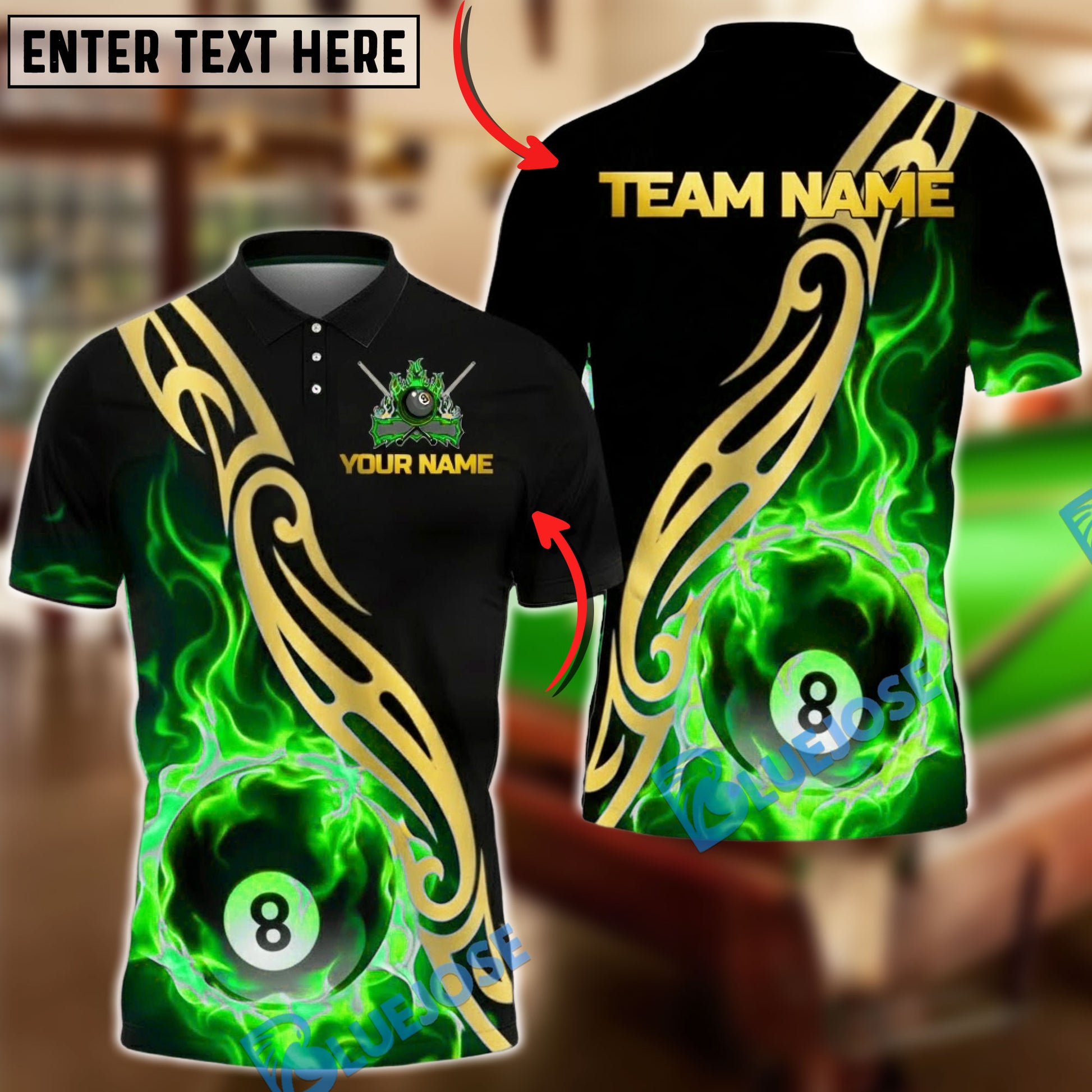 BlueJose Billiards 8 Ball Flame Golden Tribal Pattern Personalized Name, Team Name Unisex Shirt (4 Colors)