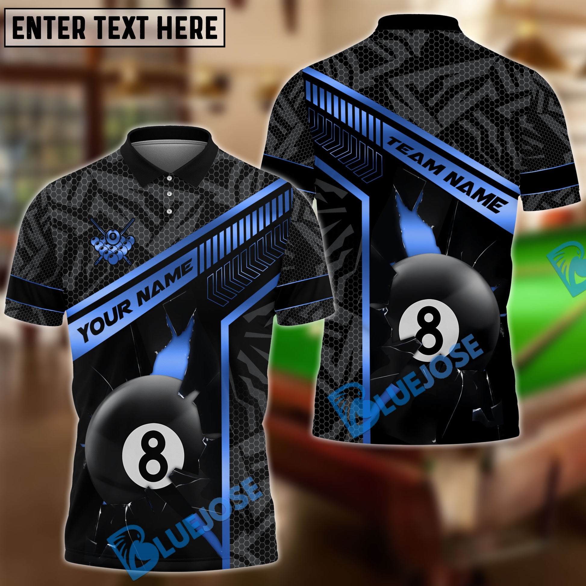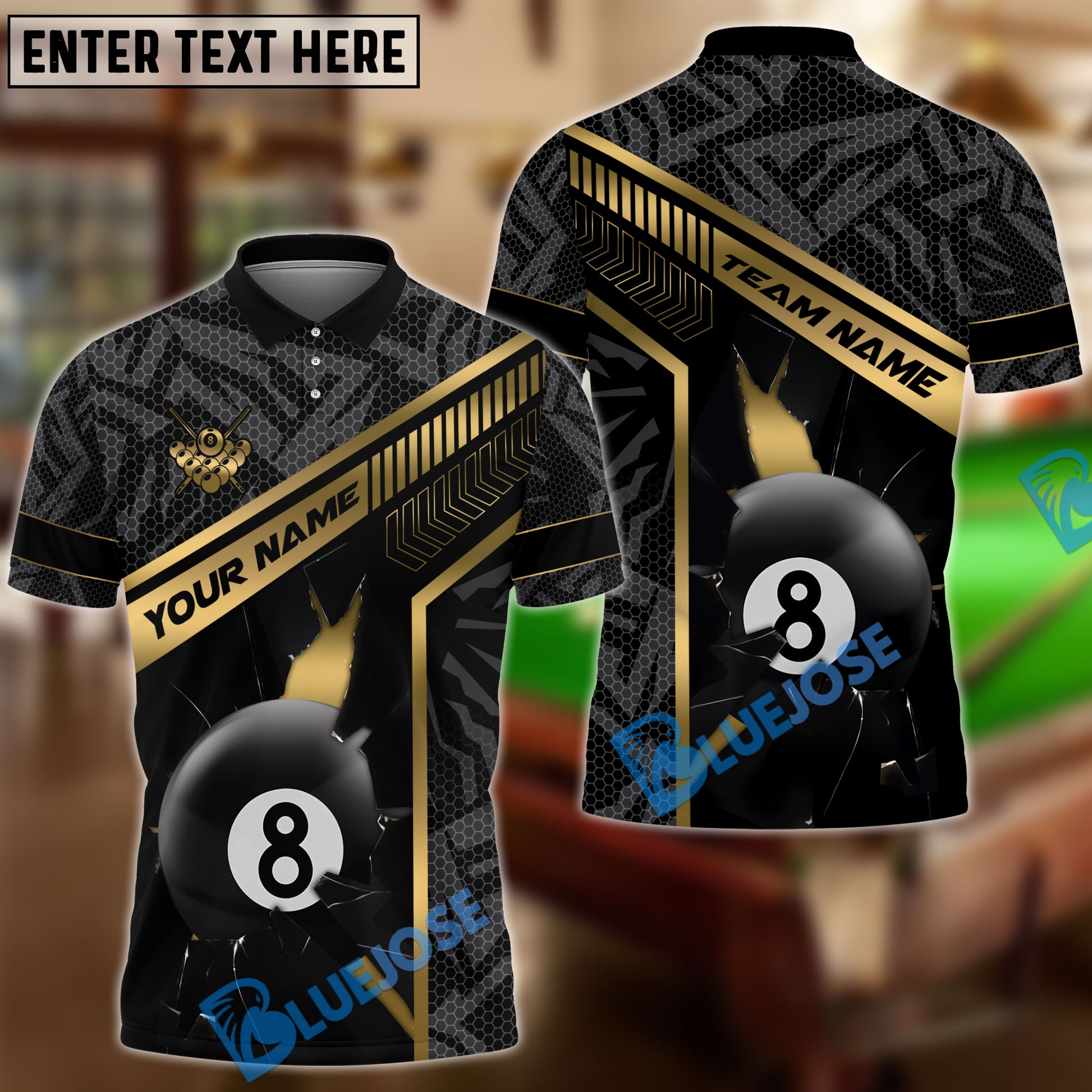 BlueJose Billiards 8-Ball Gold Strike Line Design Personalized Name, Team Name Unisex Shirt (4 Colors)