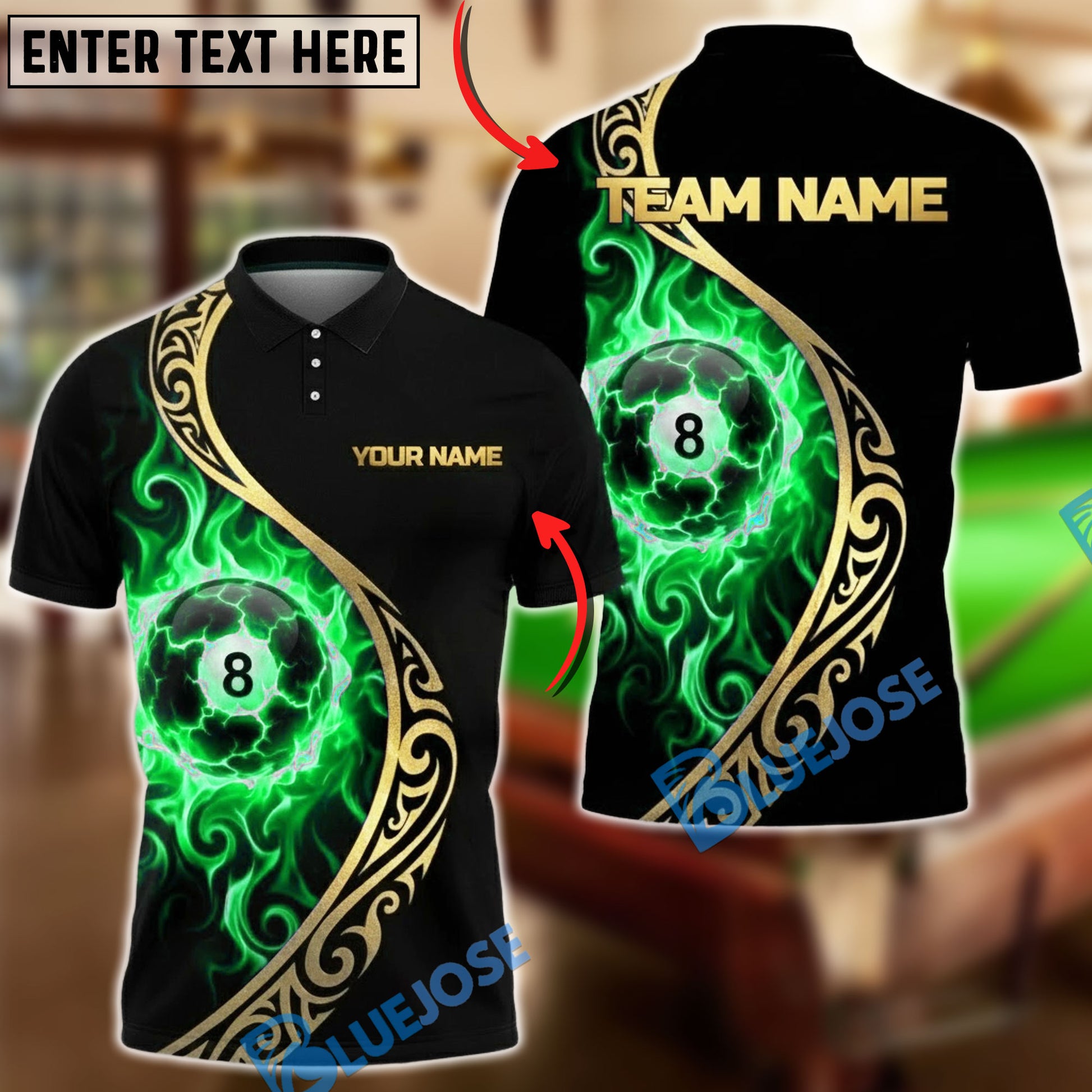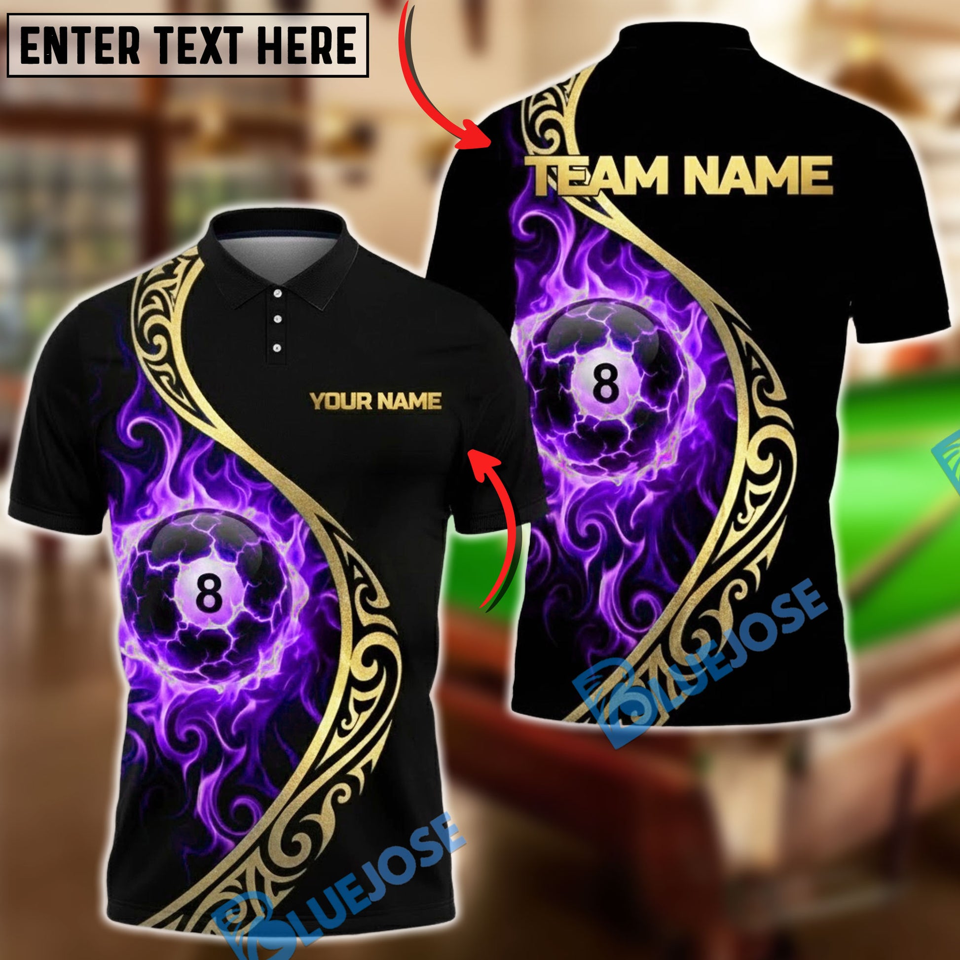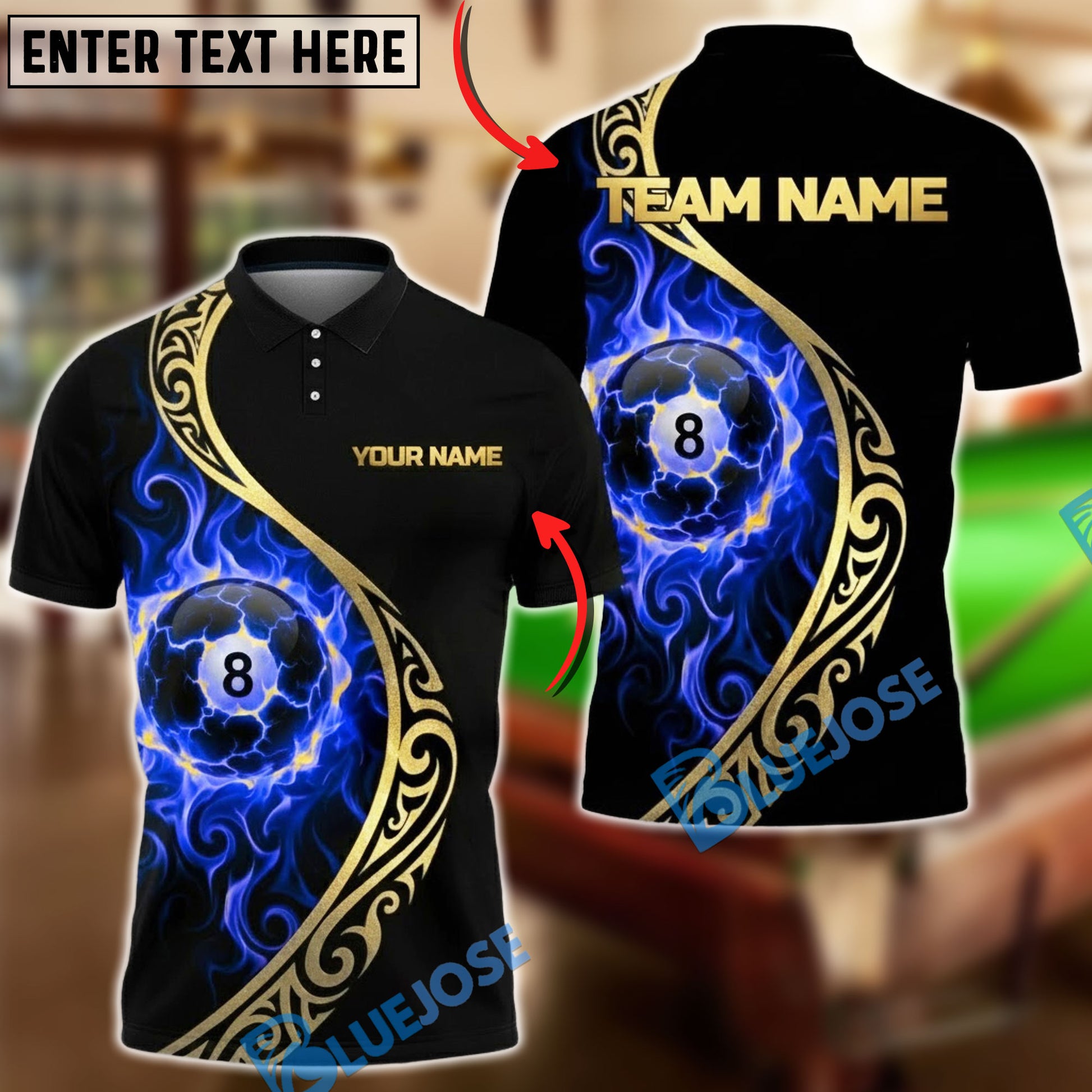 BlueJose Billiards 8 Ball Golden Tribal Fire Personalized Name, Team Name Unisex Shirt (4 Colors)