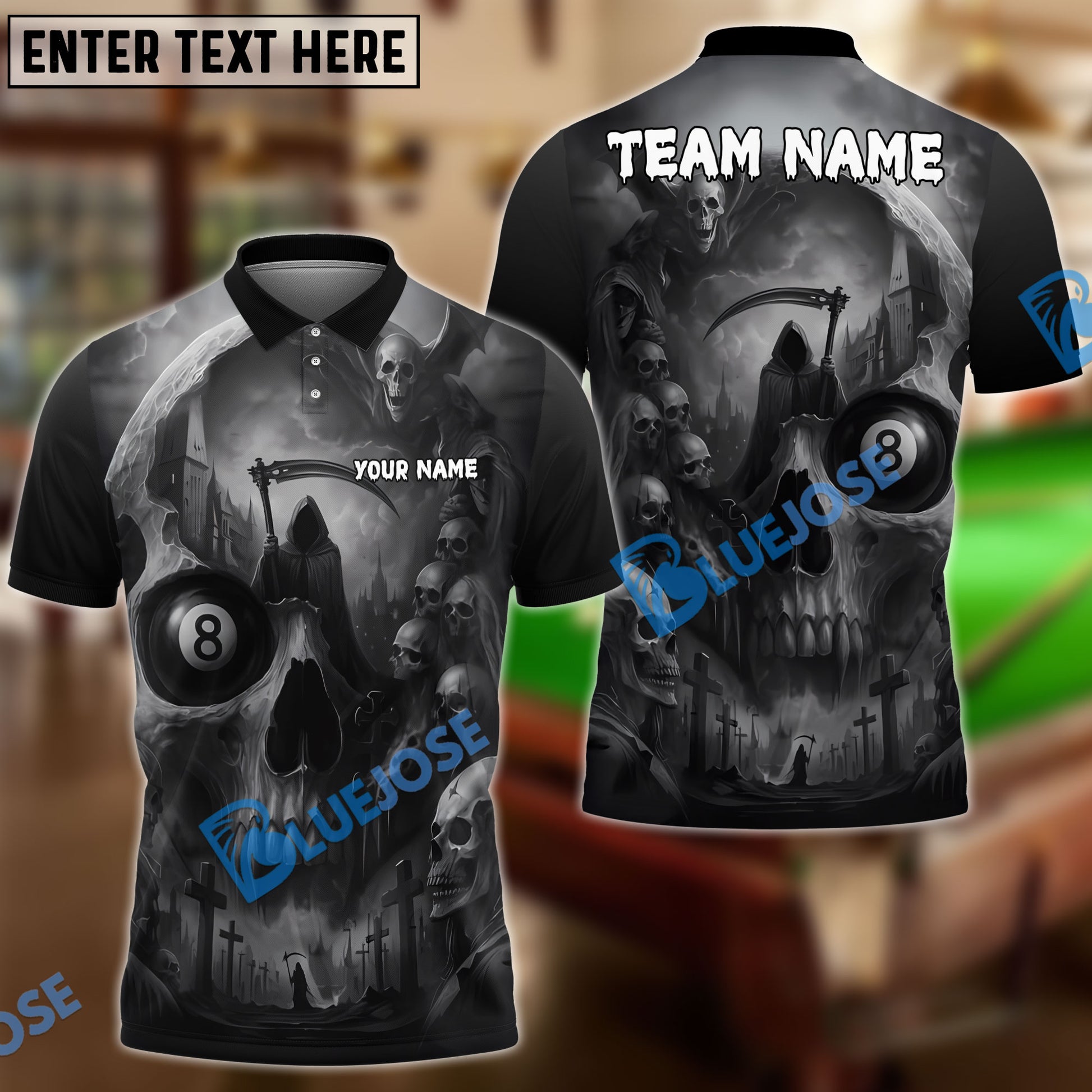 BlueJose Billiards 8-Ball Grim Reaper Skull Cemetery Personalized Name, Team Name Unisex Shirt