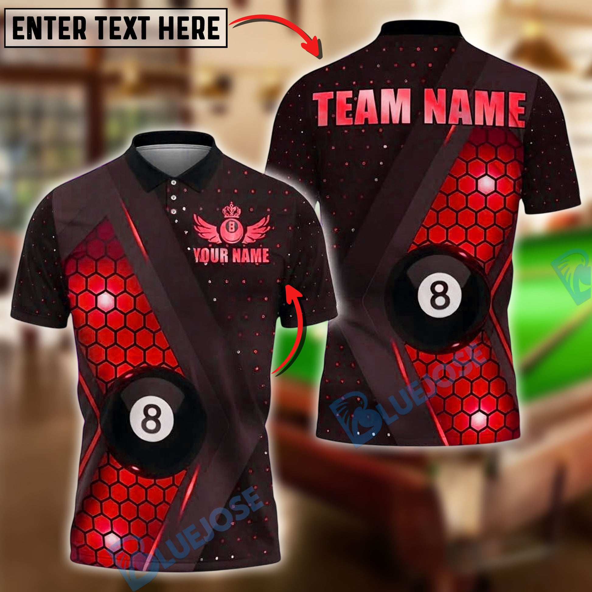 BlueJose Billiards 8 Ball Hex Pattern Personalized Name, Team Name Unisex Shirt (4 Colors)