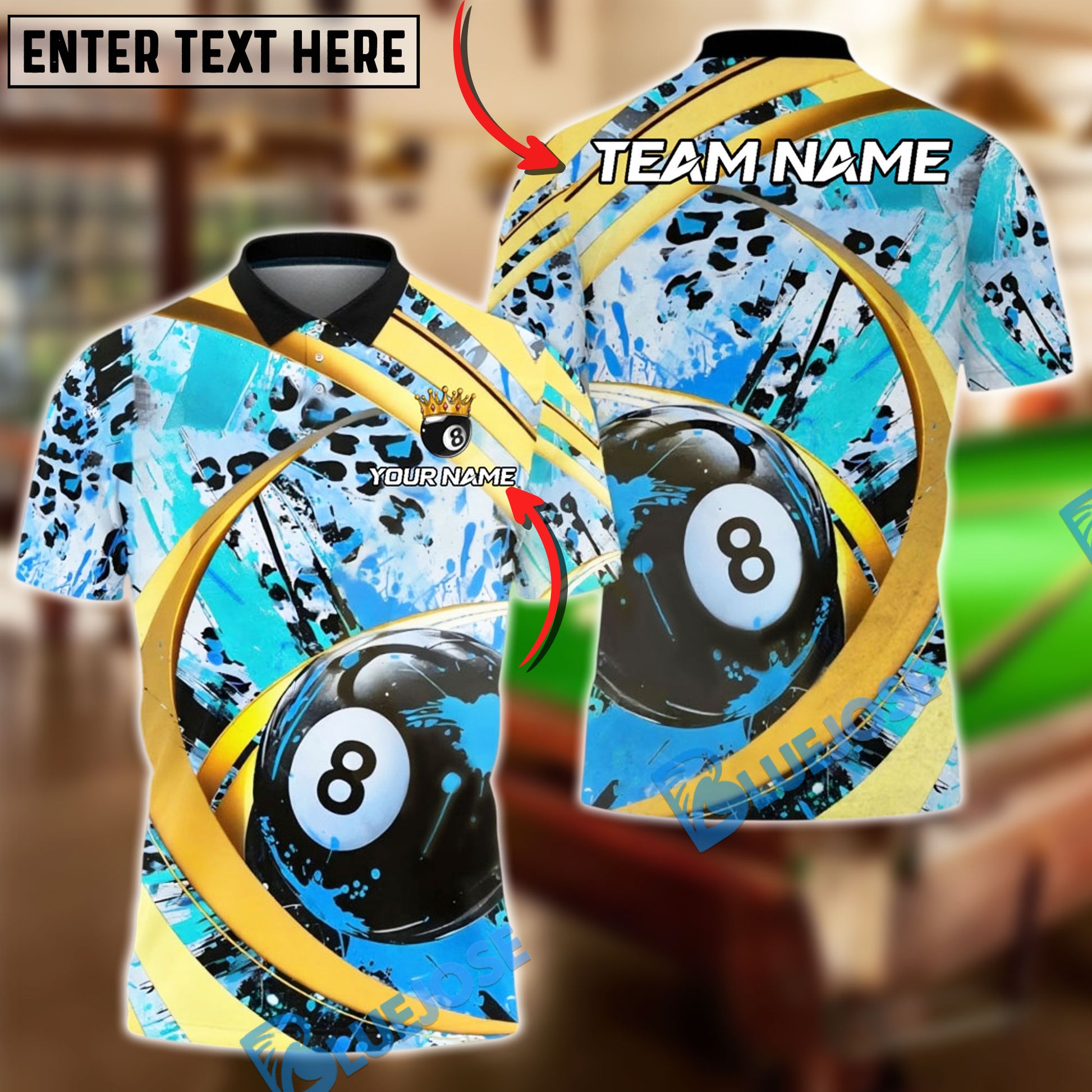 BlueJose Billiards 8-Ball Leopard Splash Paint Personalized Name, Team Name Unisex Shirt (6 Colors)