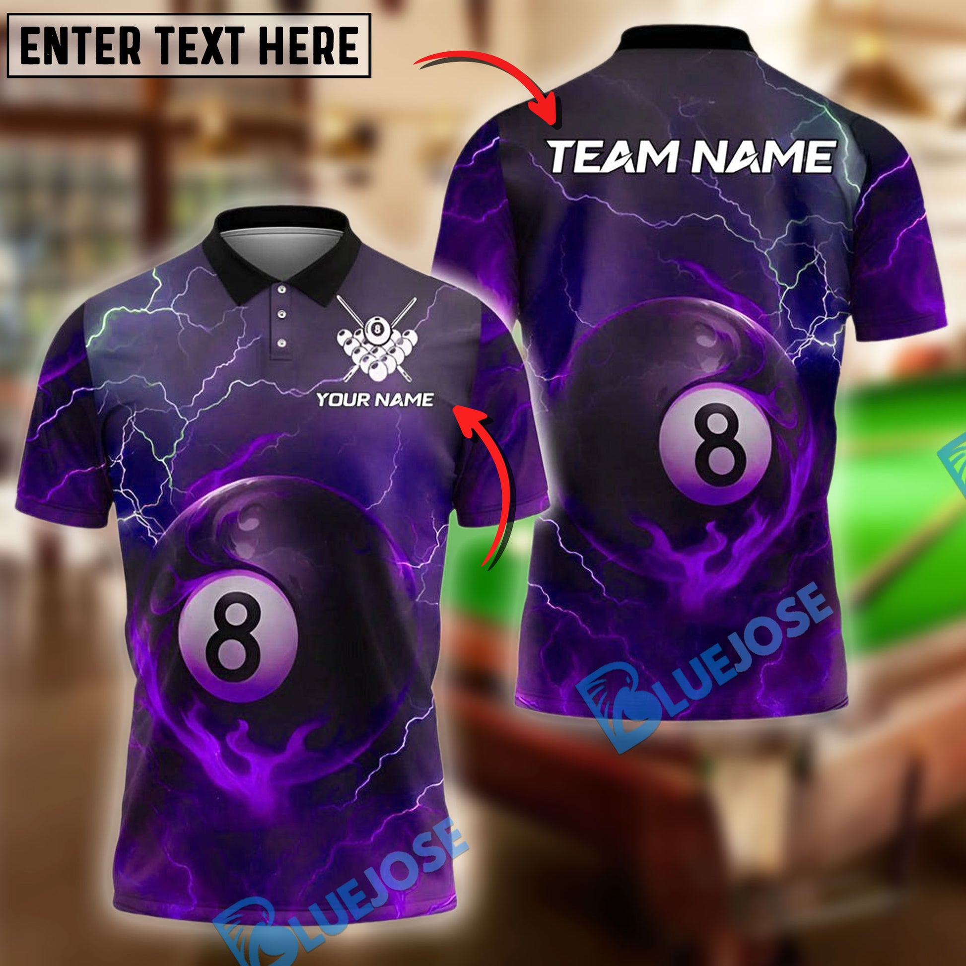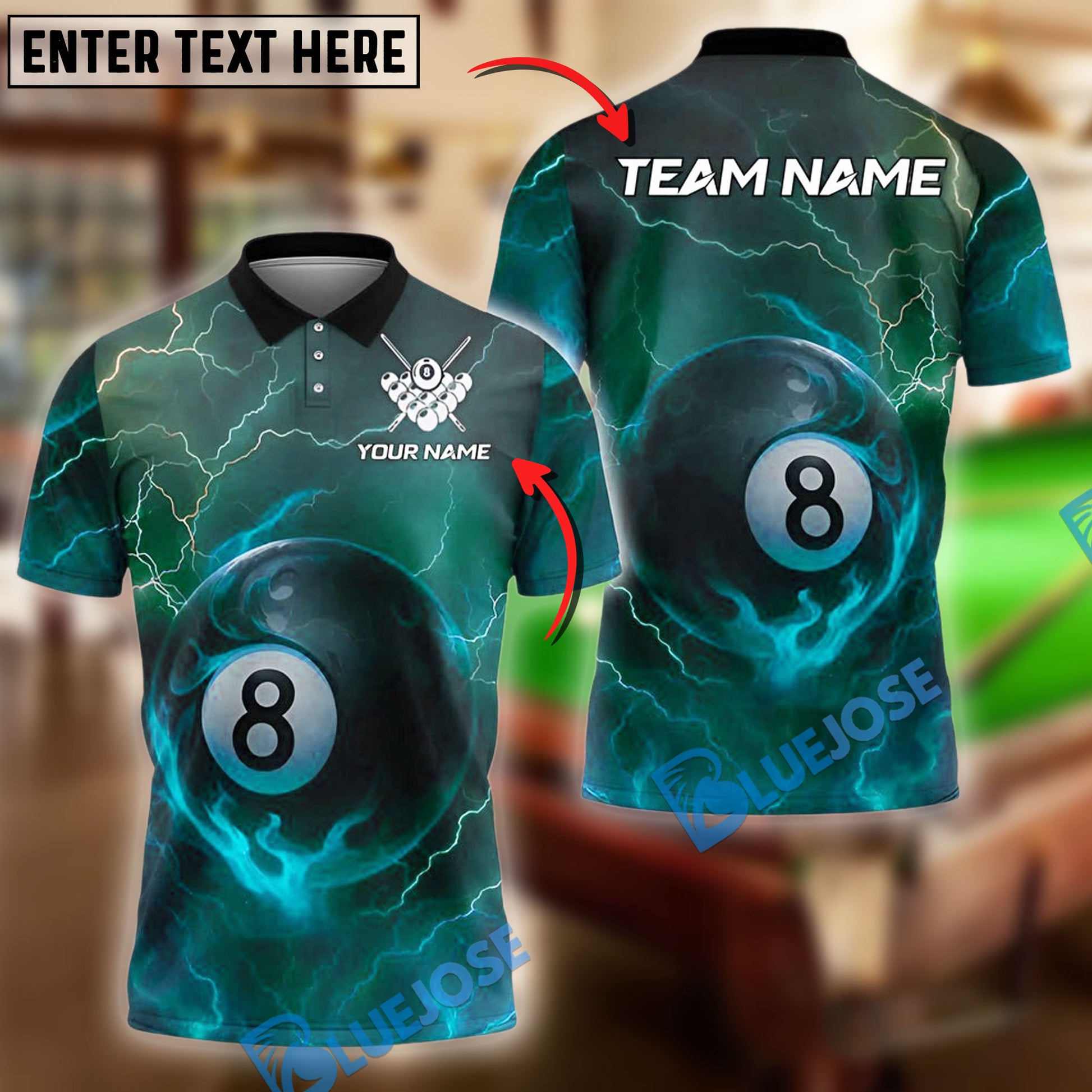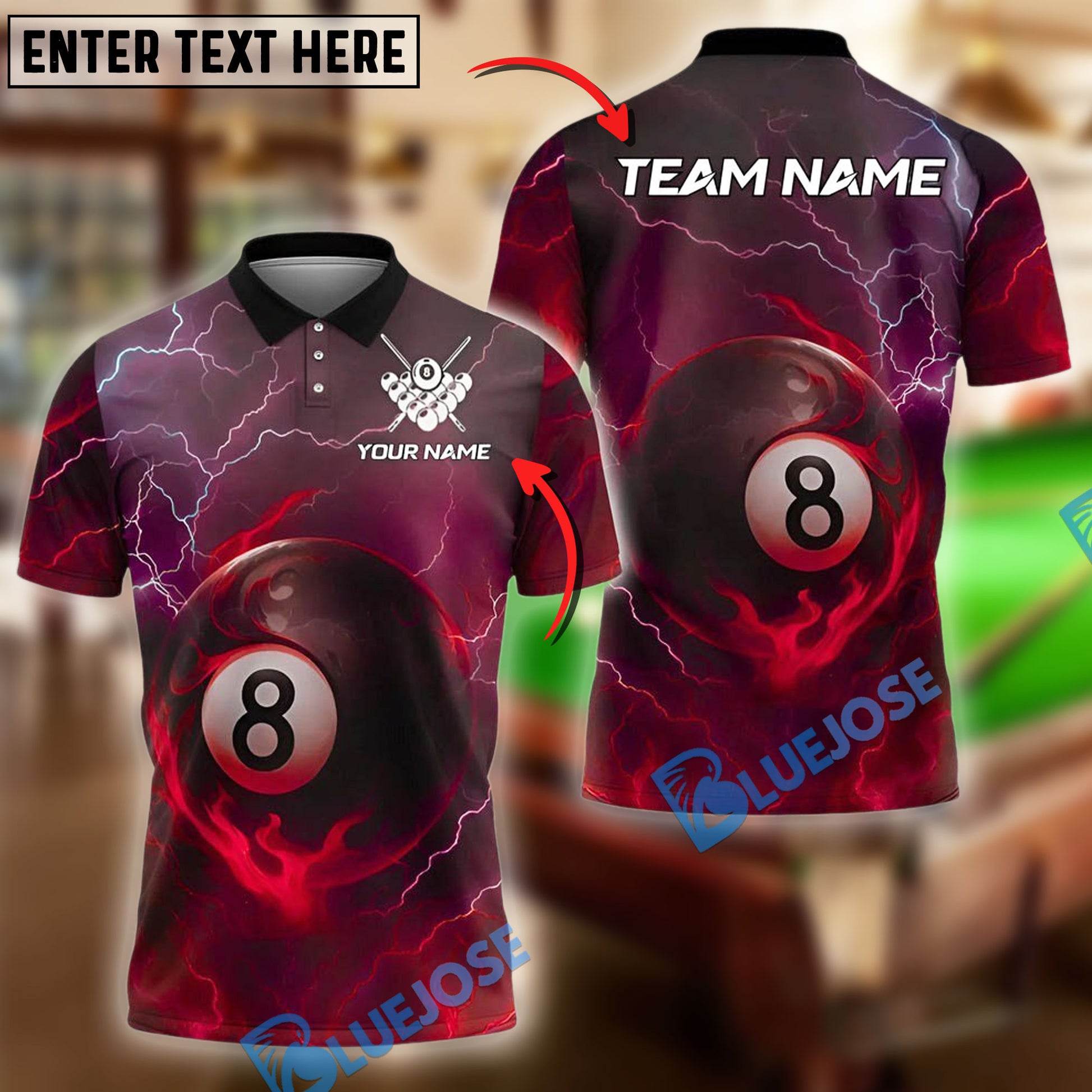 BlueJose Billiards 8 Ball Lightning Fire Personalized Name Shirt (4 Colors)