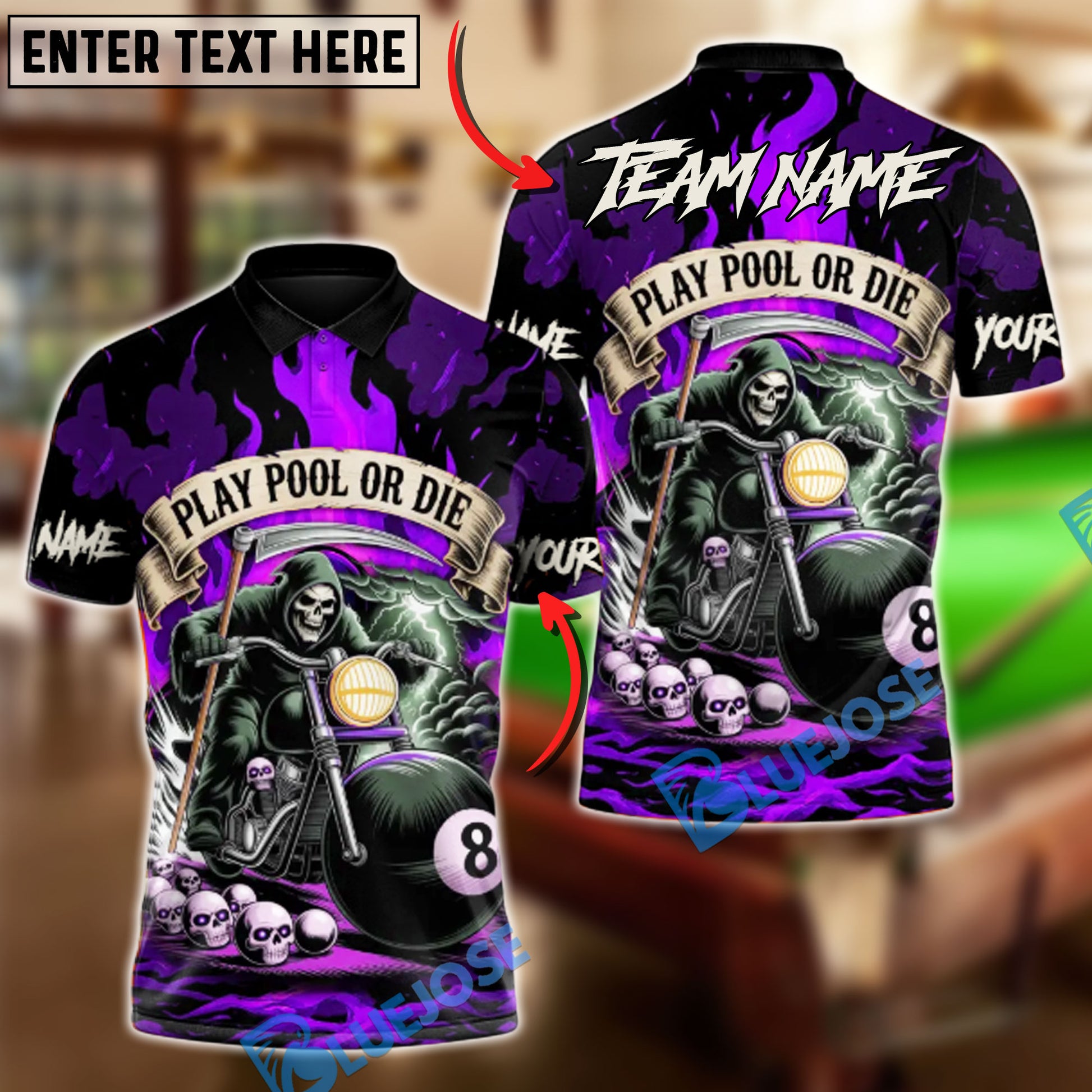 BlueJose Billiards 8 Ball Play Pool or Die Personalized Name, Team Name Unisex Shirt (4 Colors)