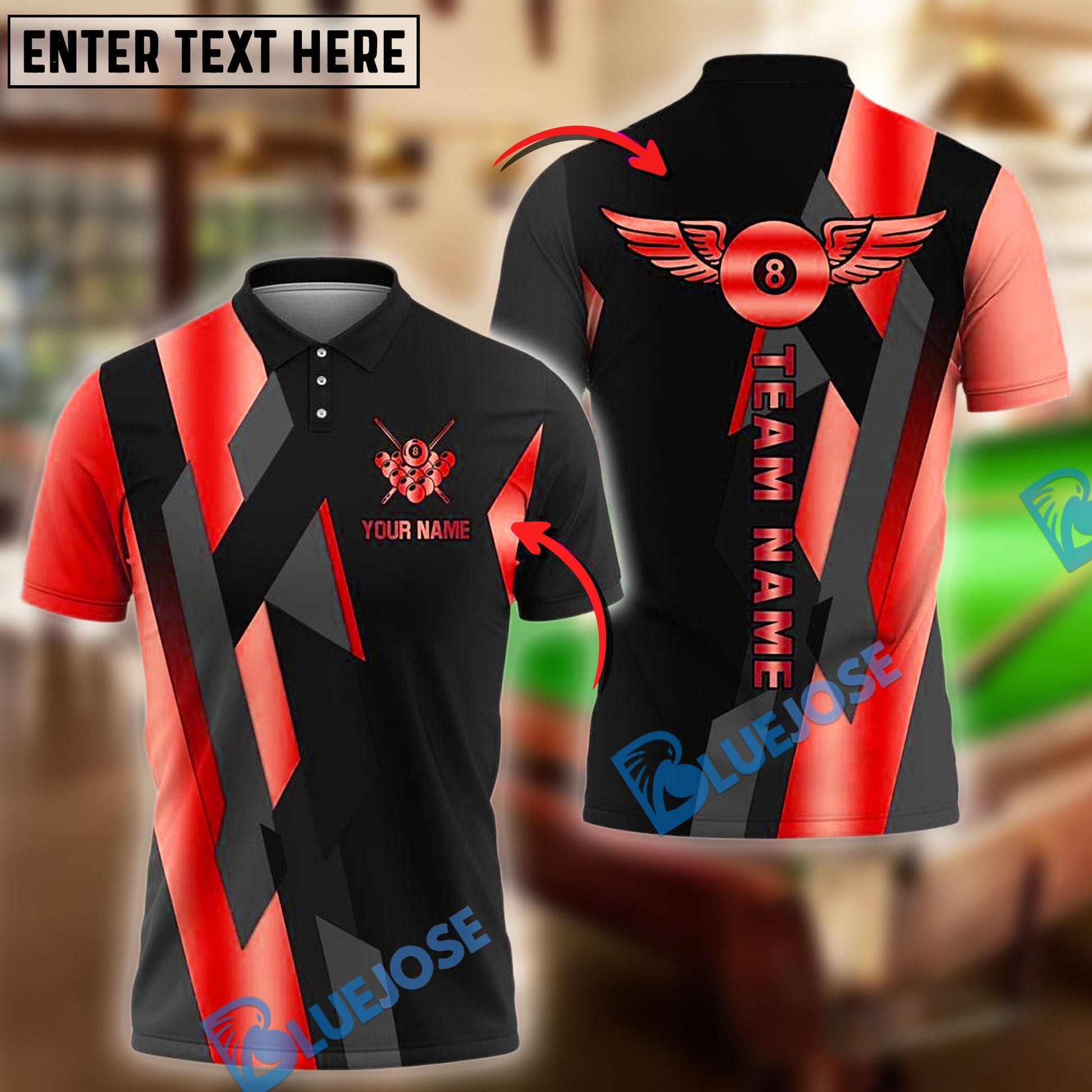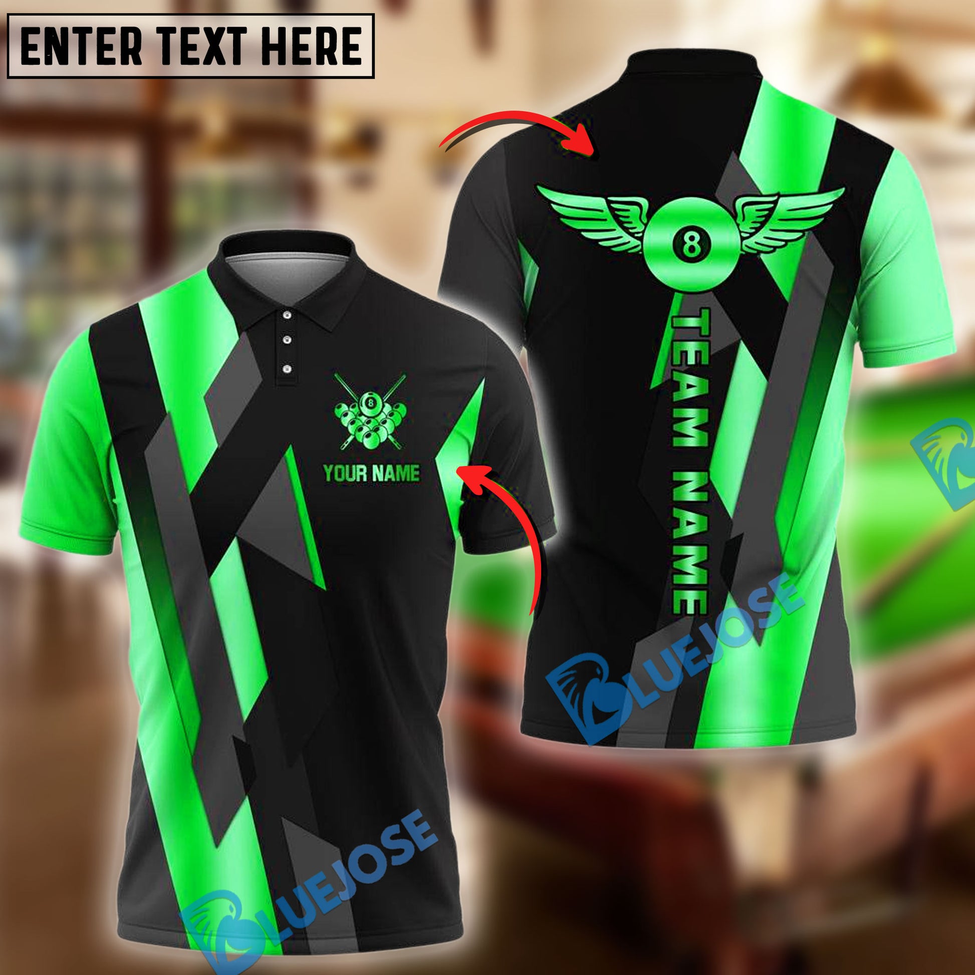 BlueJose Billiards 8-Ball Pool Golden Personalized Name & Team Name Shirt (4 Colors)