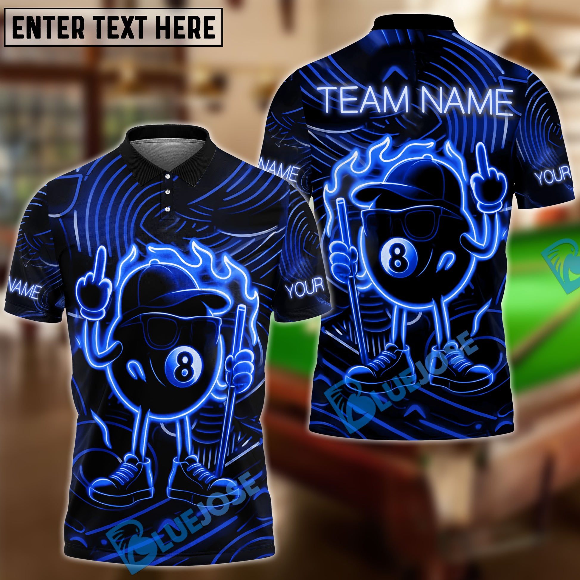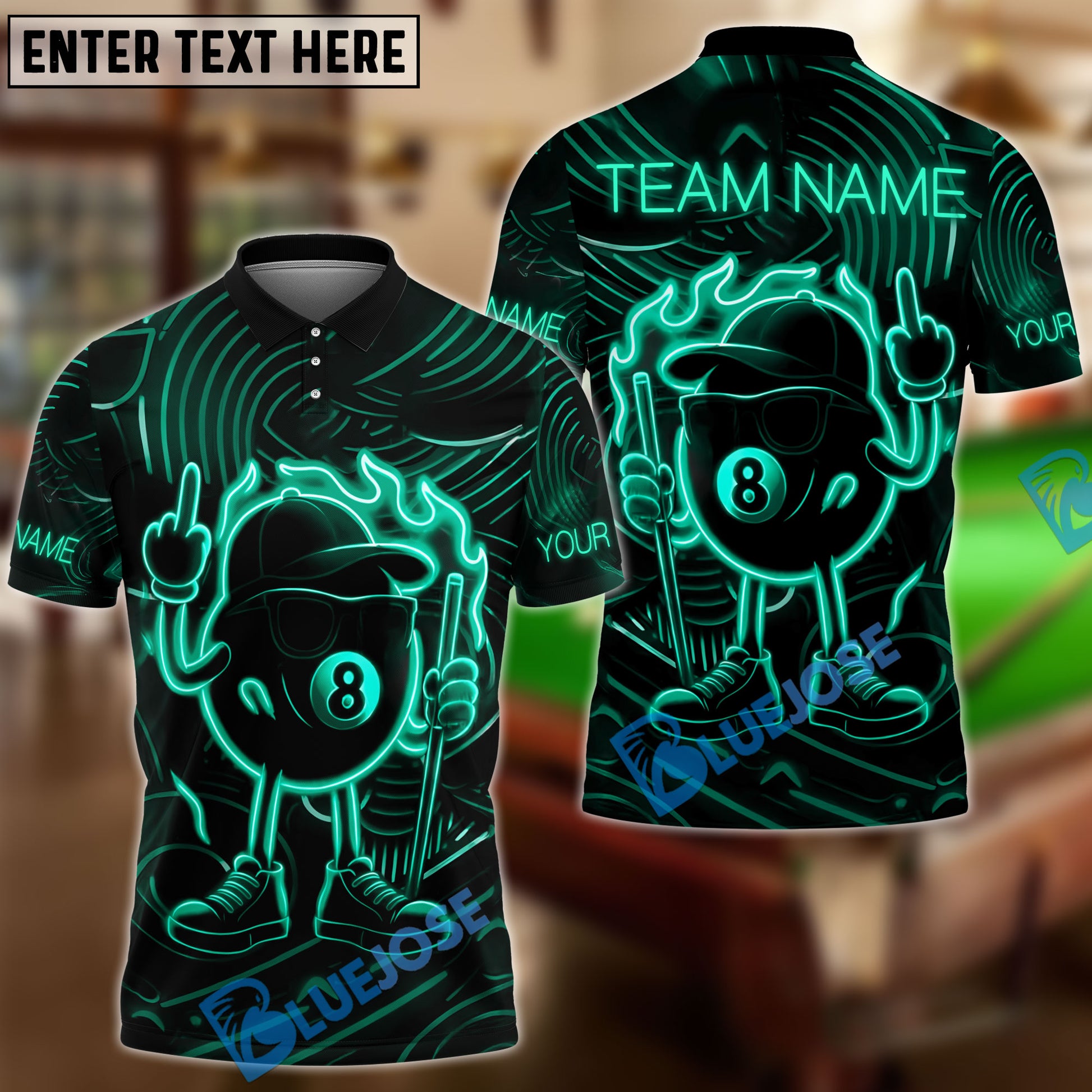 BlueJose Billiards 8 Ball Pool Neon Fire Personalized Name Shirt (4 Colors)