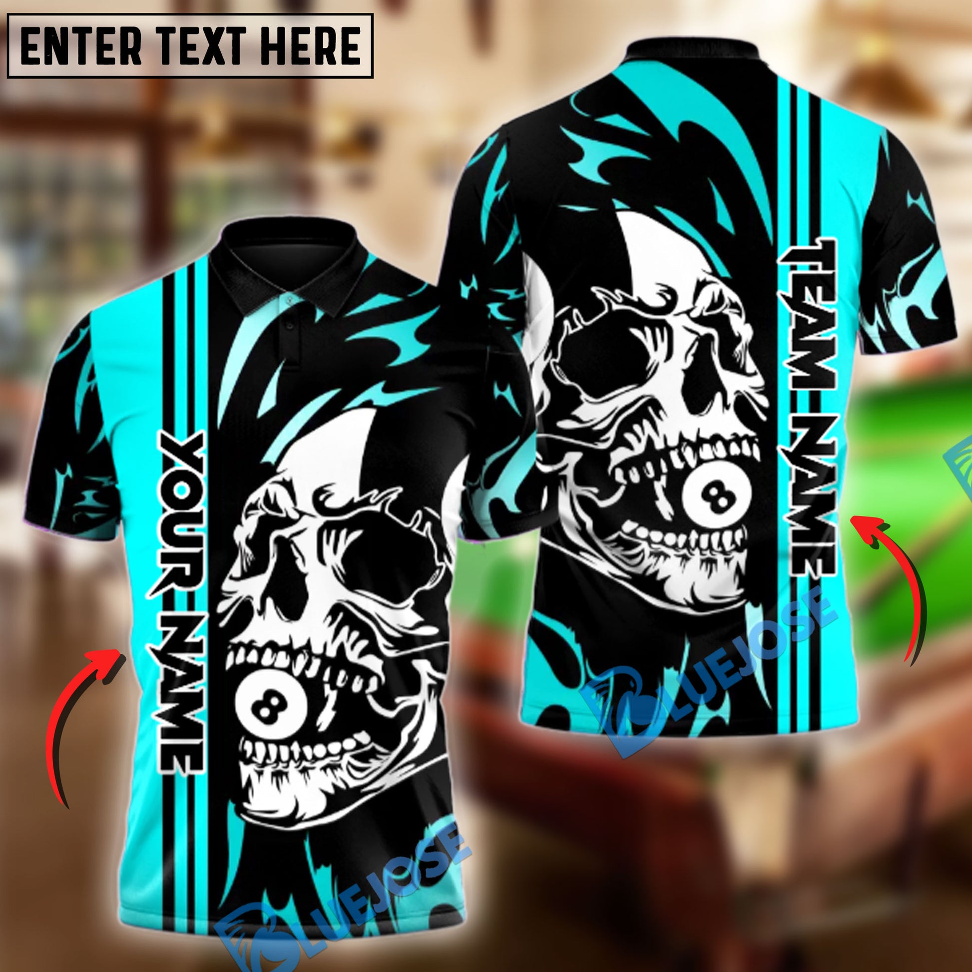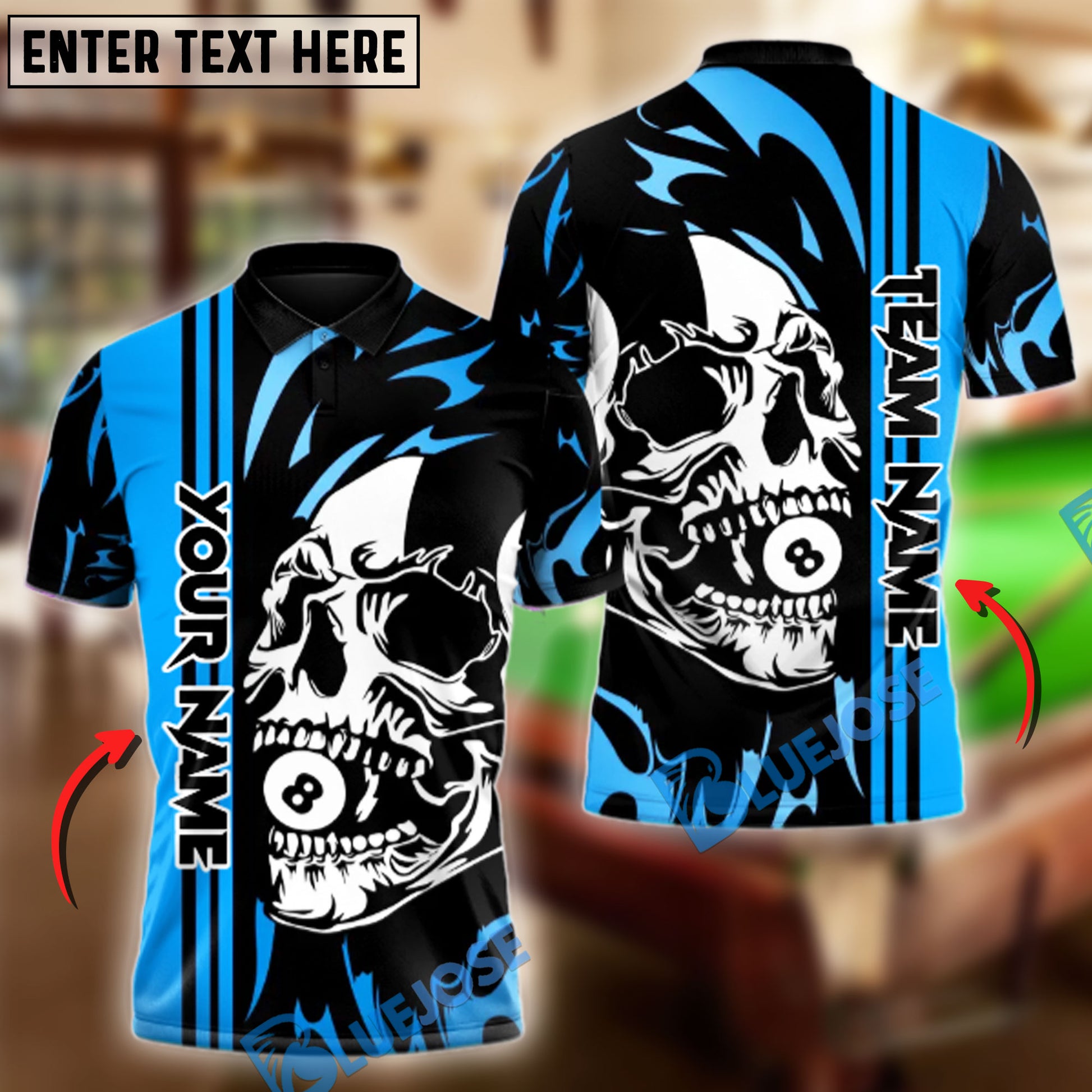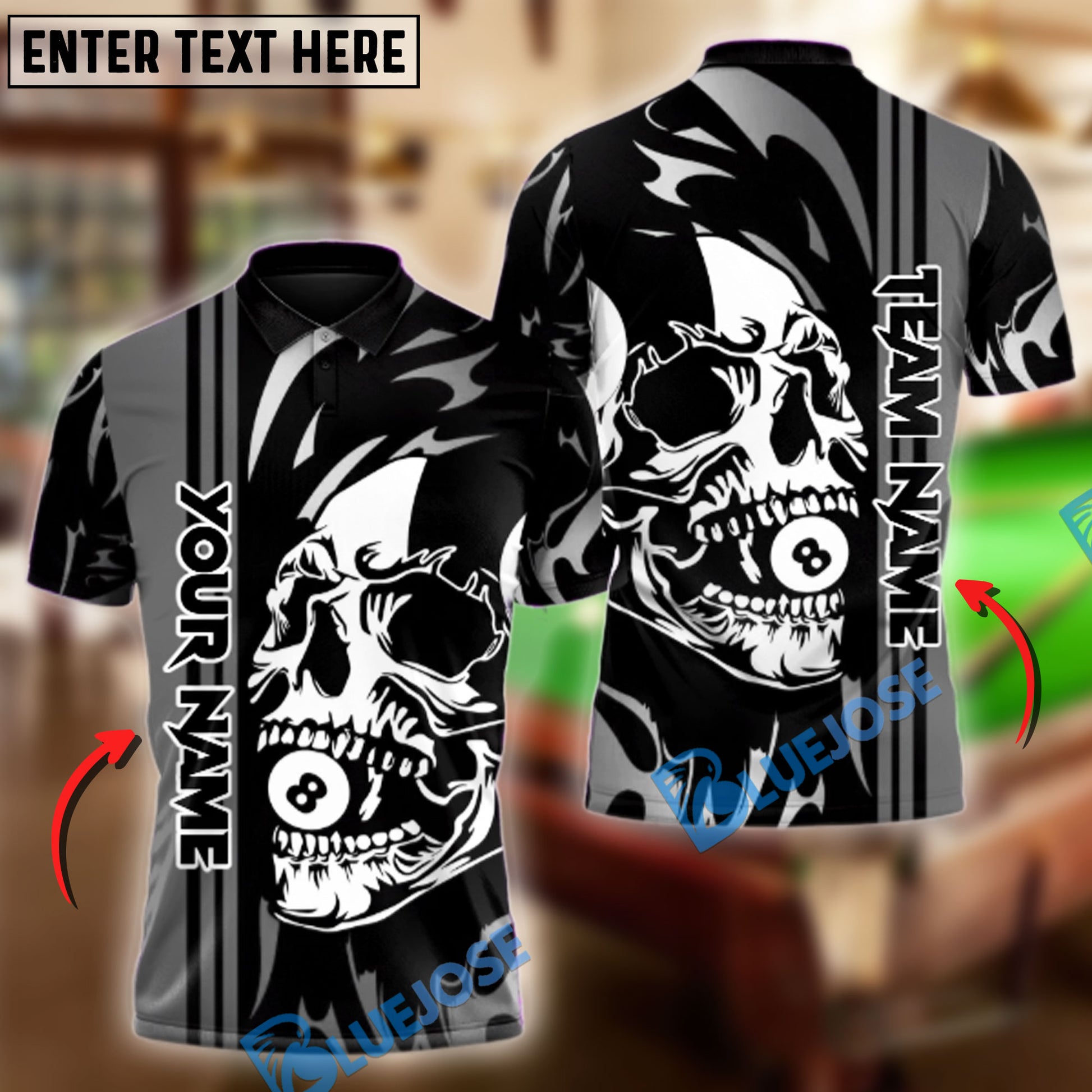 BlueJose Billiards 8-Ball Pool Skull Face Personalized Name, Team Name Shirt (6 Colors)