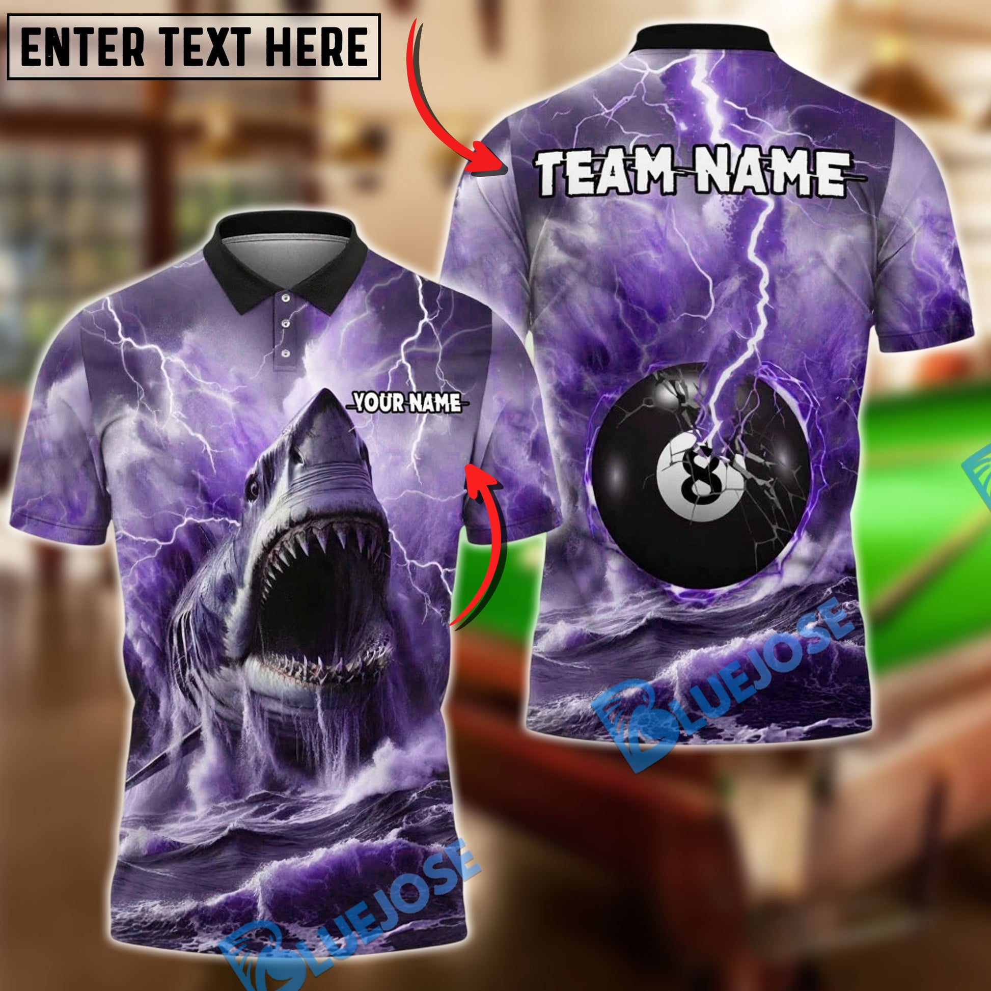 BlueJose Billiards 8 Ball Shark and Lightning Personalized Name, Team Name Unisex Shirt (4 Colors)