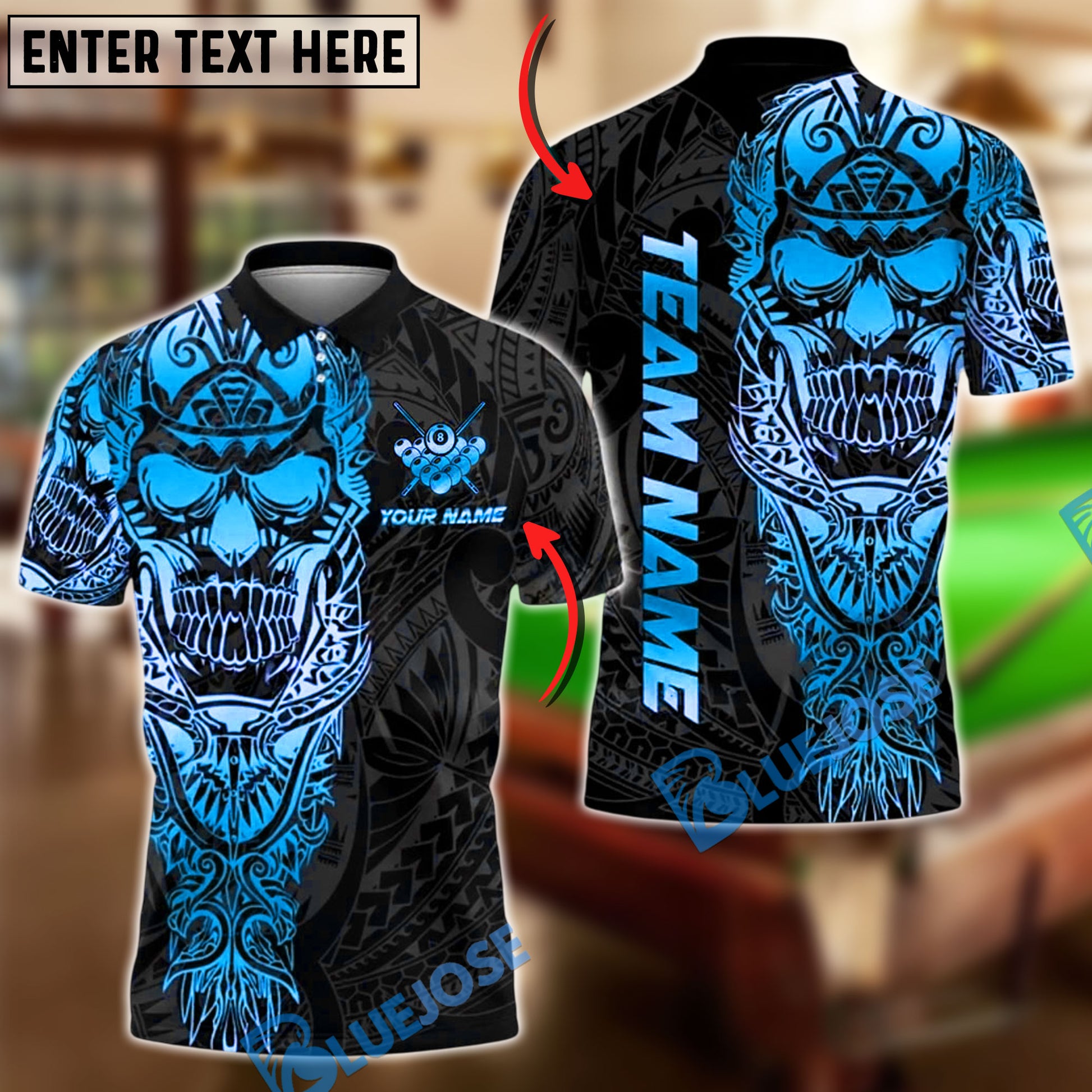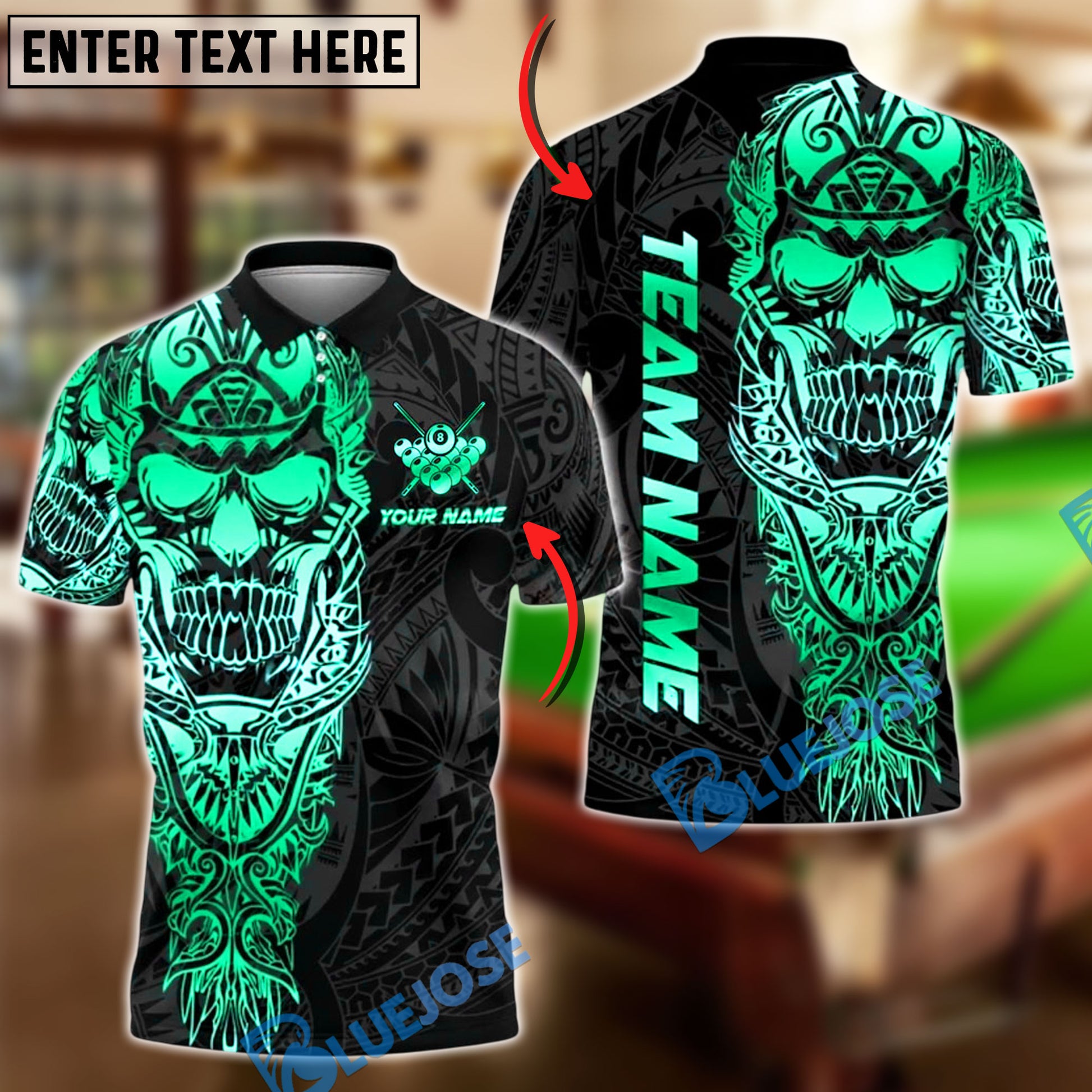 BlueJose Billiards 8 Ball Sport Skull Warrior Tribal Personalized Name, Team Name Unisex Shirt (4 Colors)