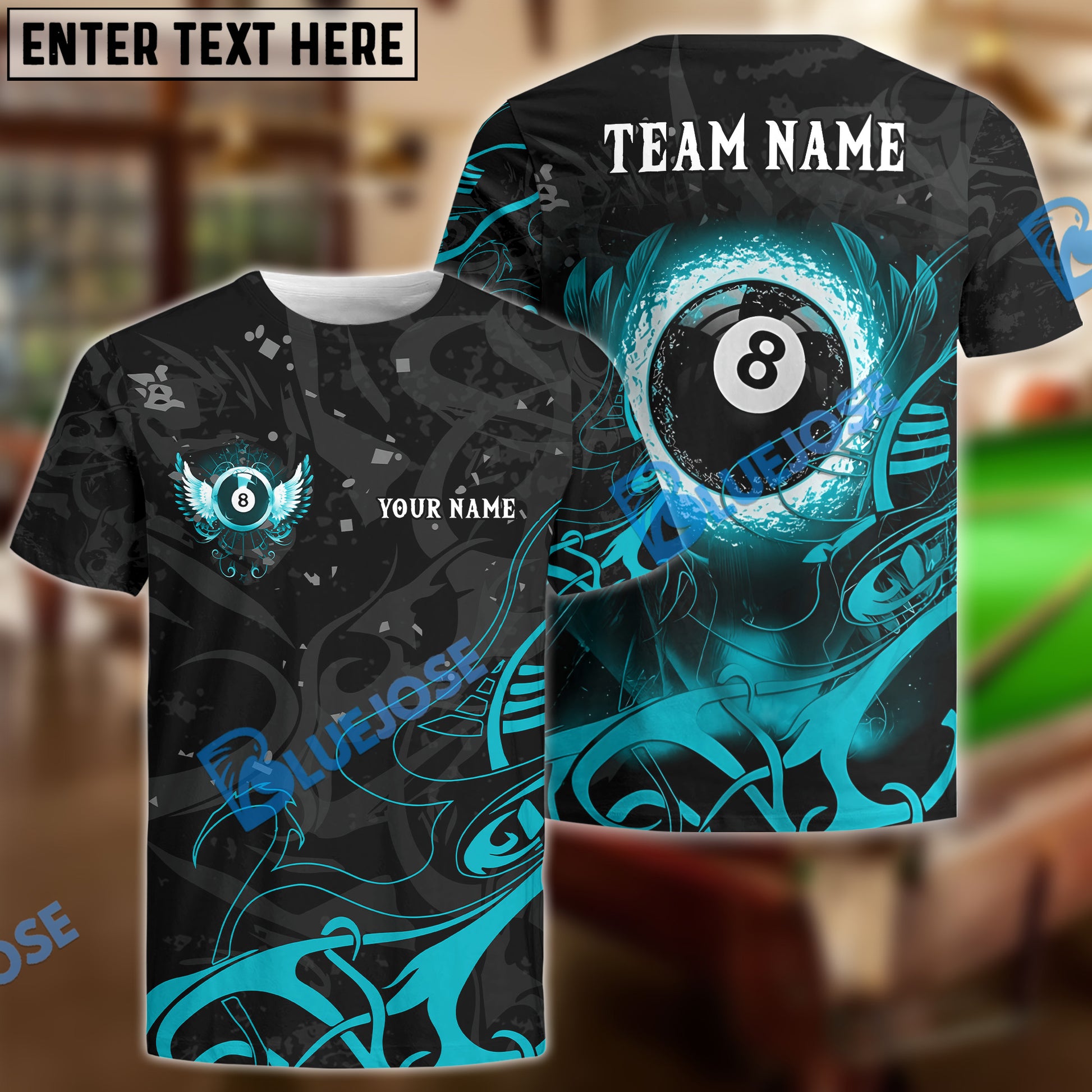 BlueJose Billiards 8 Ball Wing Personalized Name, Team Name Shirt (6 Colors)