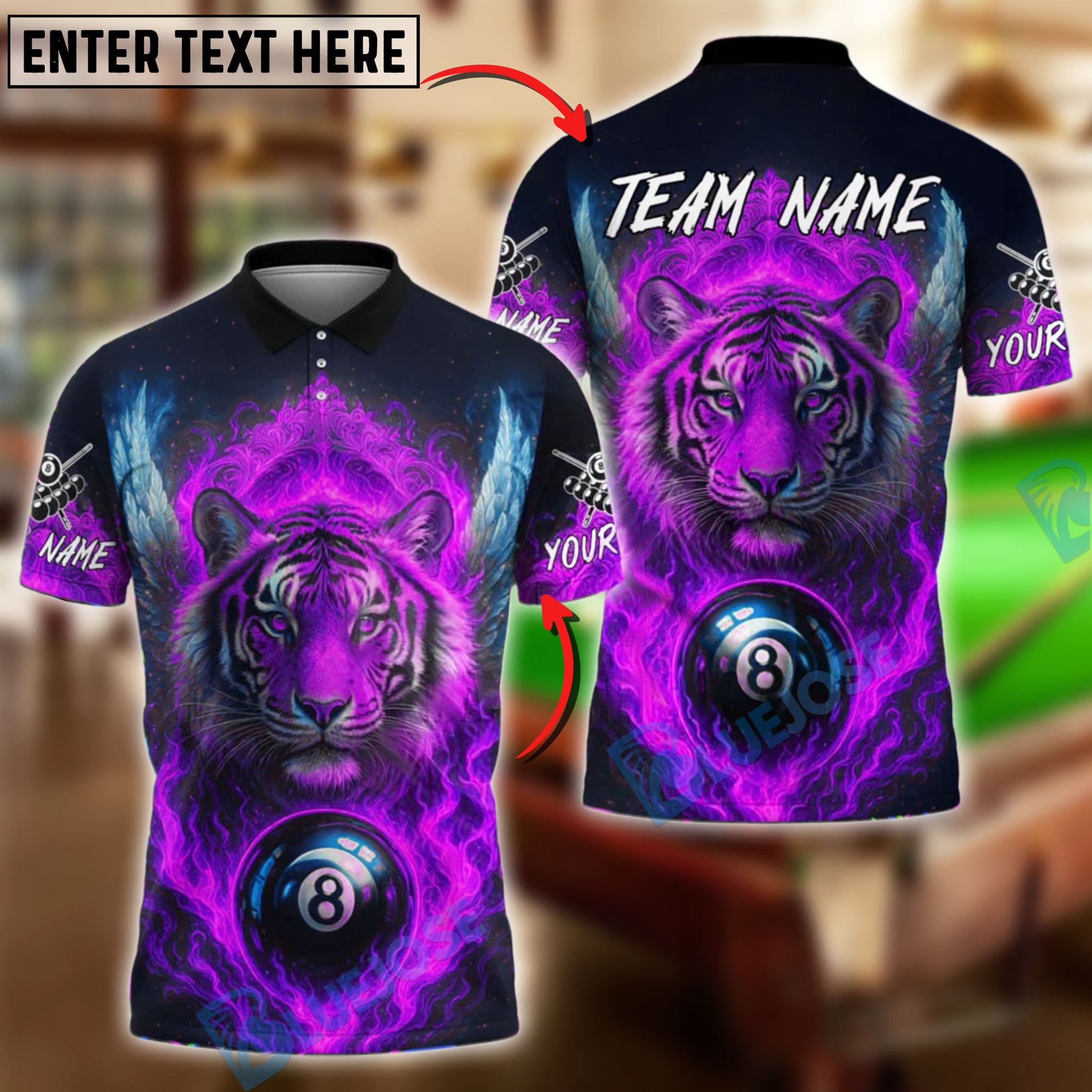 BlueJose Billiards 8 Ball Wings Fiery Tiger Personalized Name, Team Name Unisex Shirt (4 Colors)