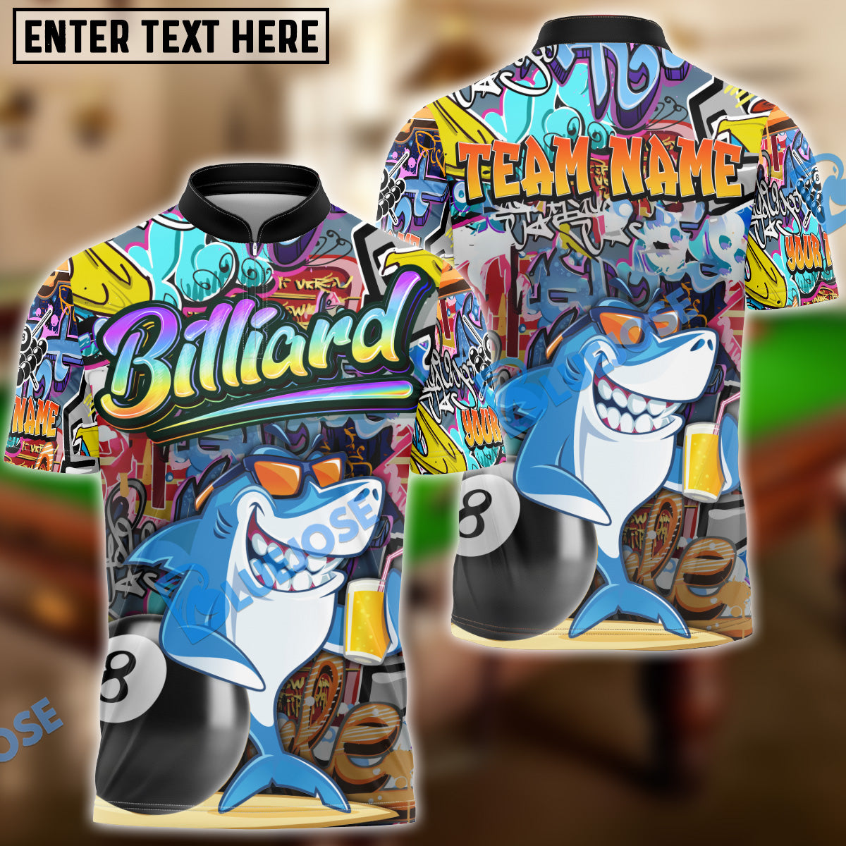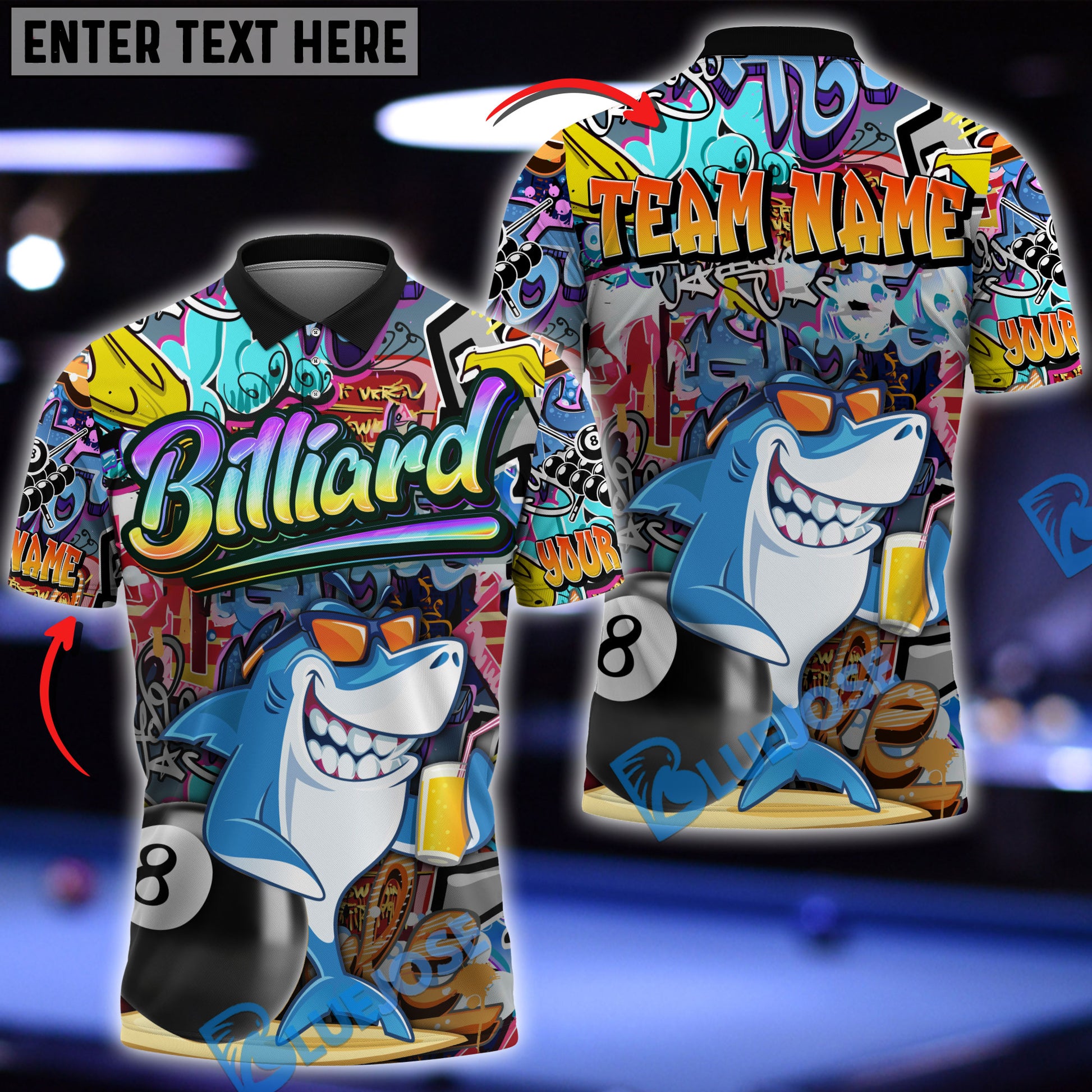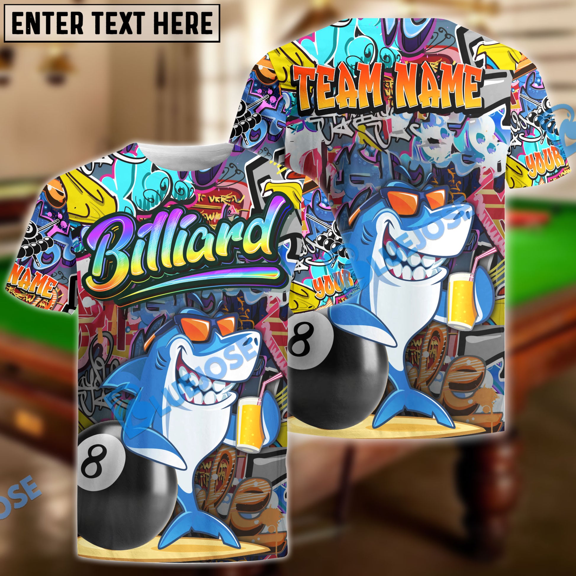 BlueJose Billiards 8 Graffiti-Style Shark Personalized Name, Team Name Shirt