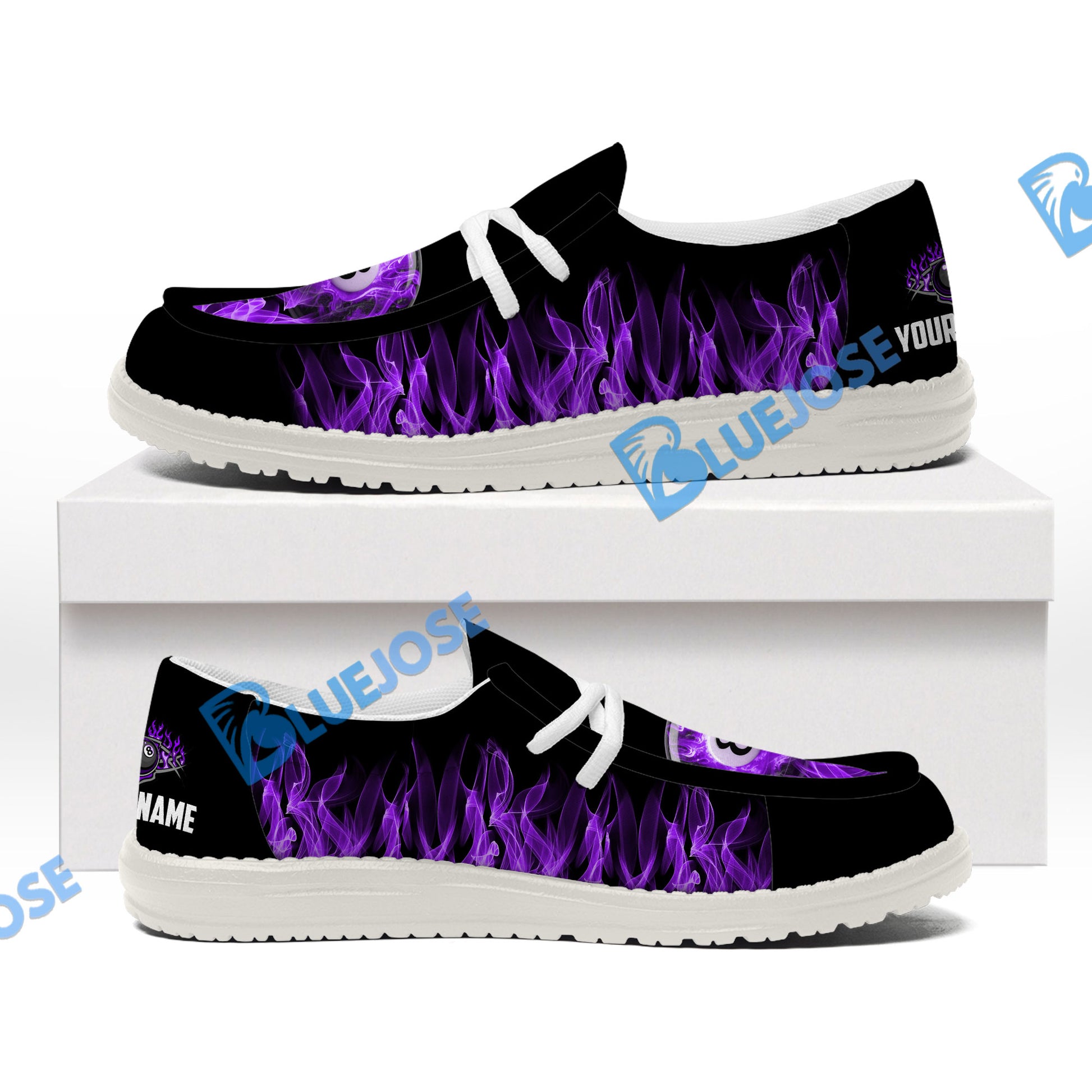 BlueJose Billiards 8 Heavenly Flame Purple White Canvas Loafer Shoes