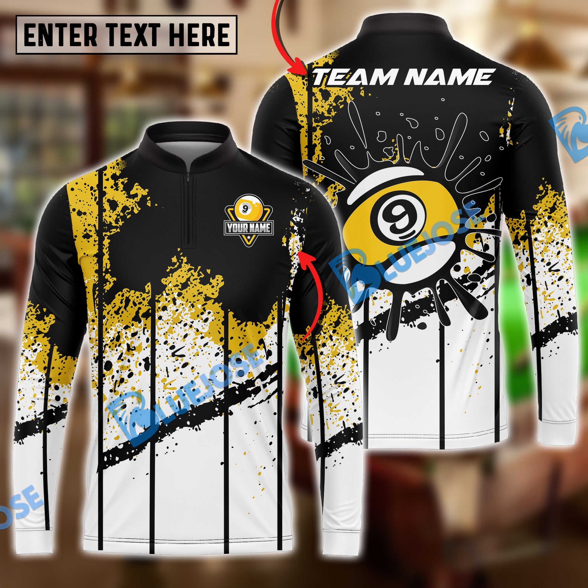BlueJose Billiards 9 Ball Ink Art Personalized Name, Team Name Shirt
