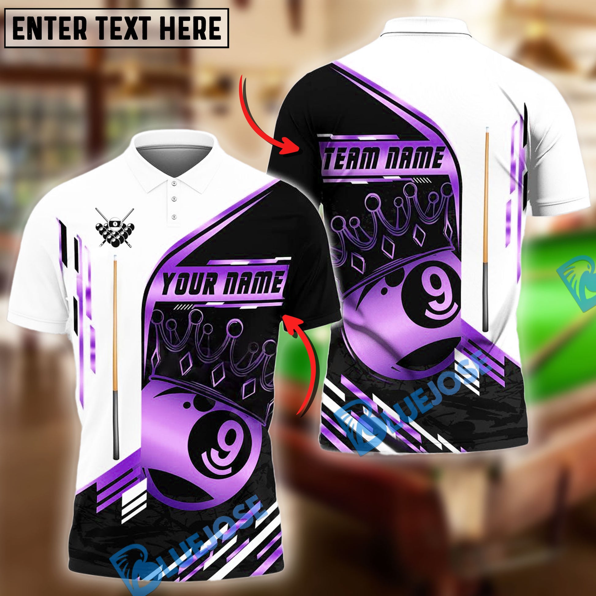 BlueJose Billiards 9-Ball Pool Champion Golden Personalized Name & Team Name Shirt (4 Colors)
