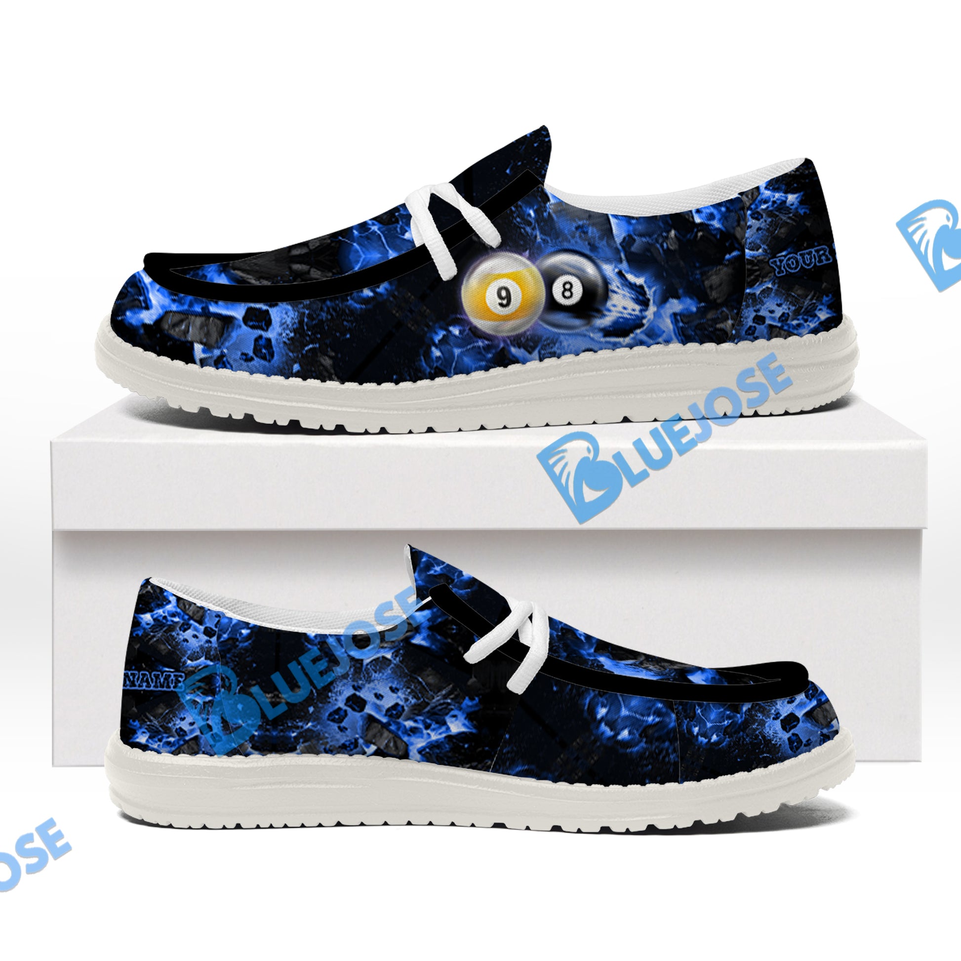 BlueJose Billiards Ball 8&9 Shoot And Destroy White Canvas Loafer Shoes ( 4 Colors )
