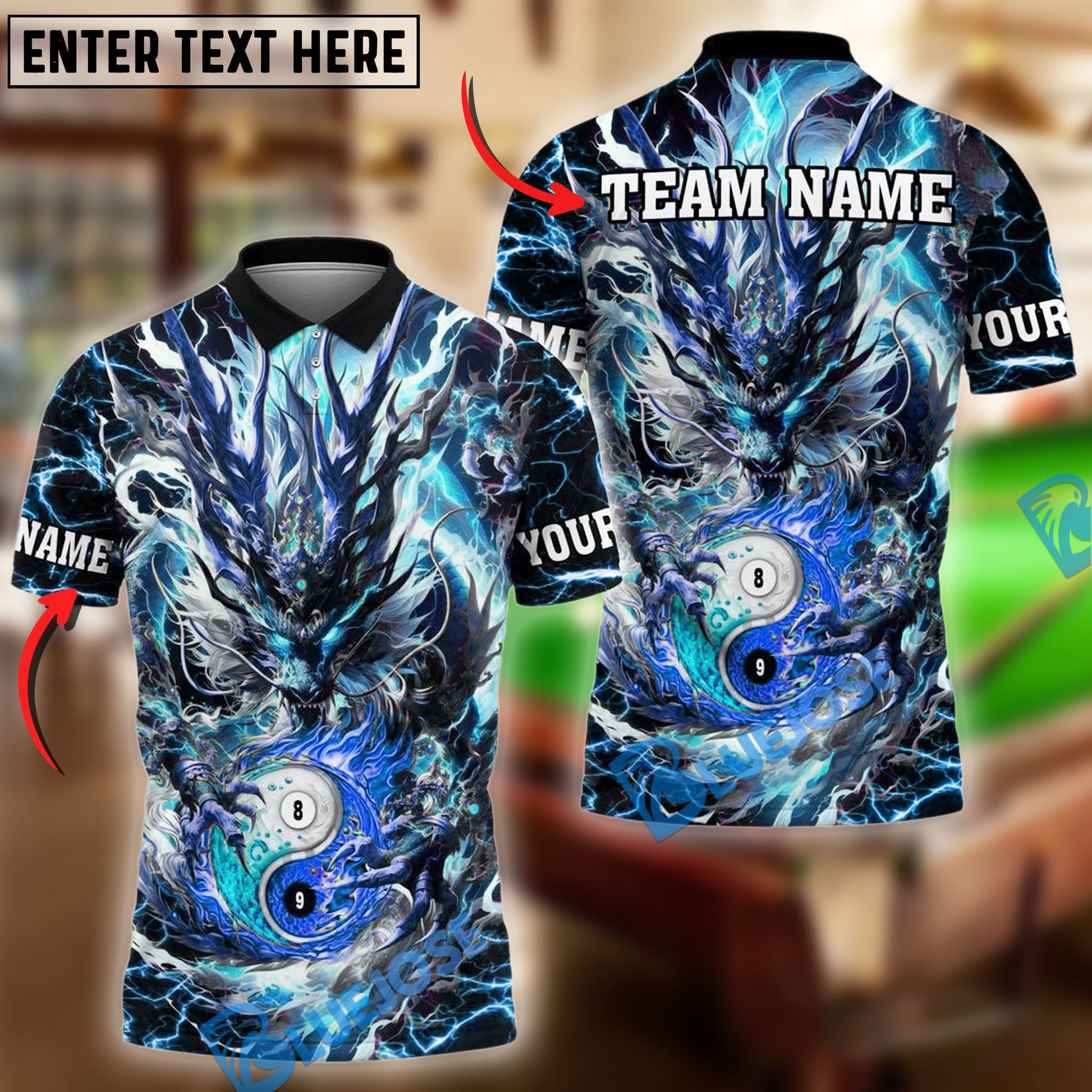 BlueJose Billiards Ball 8&9 Yin Yang Mystic Storm Dragon Personalized Name Shirt (4 Colors)