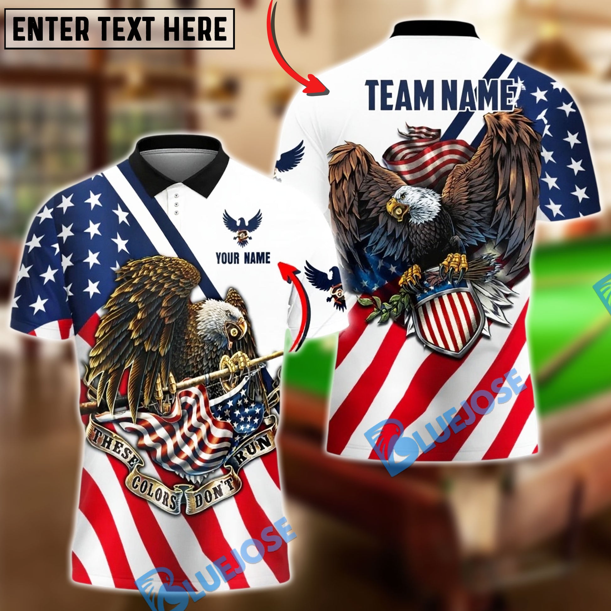 BlueJose Billiards Ball 8 American Eagle Flag Pride Customized Name, Team Name 3D Shirt