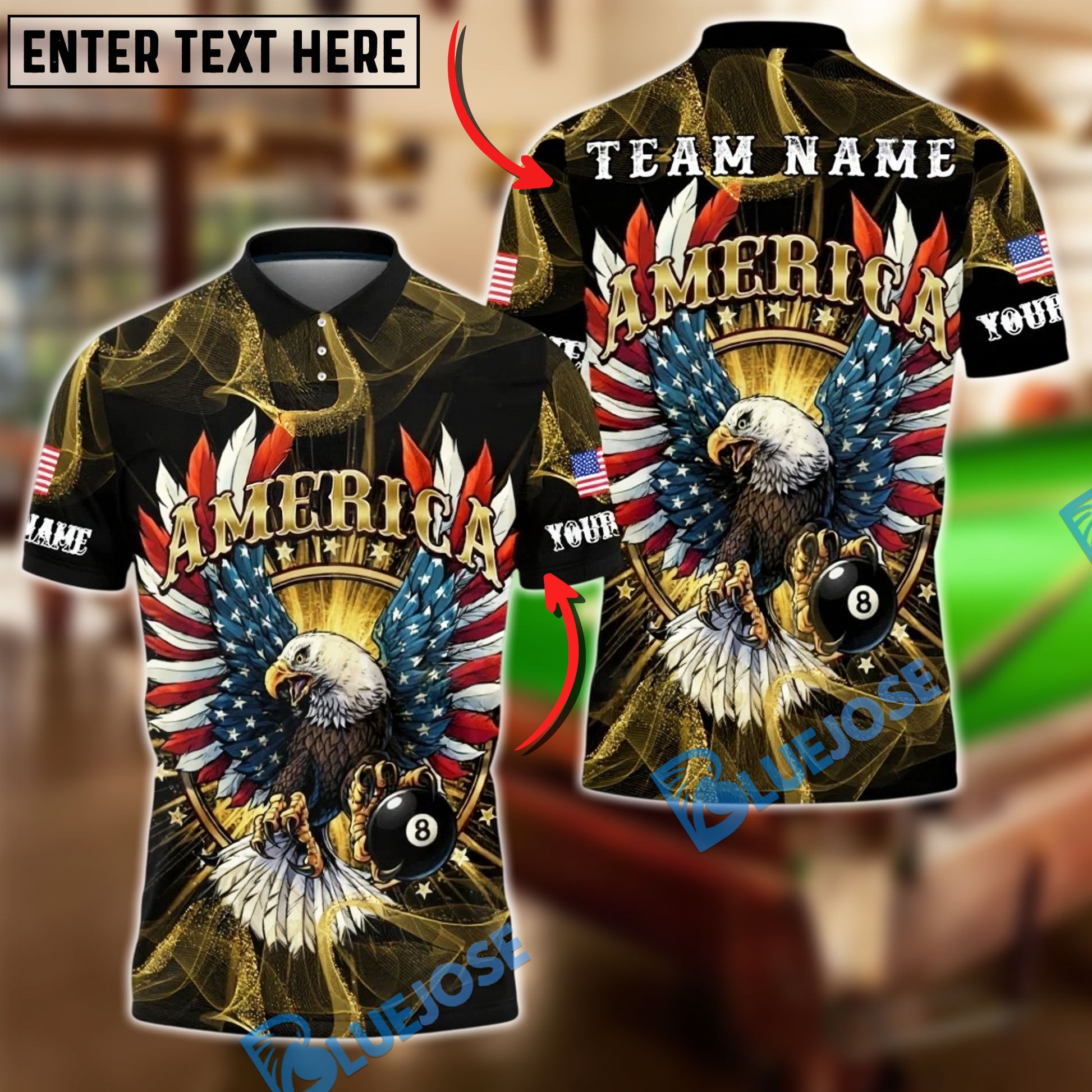 BlueJose Billiards Ball 8 American Eagle Glory Wings Customized Name, Team Name 3D Shirt